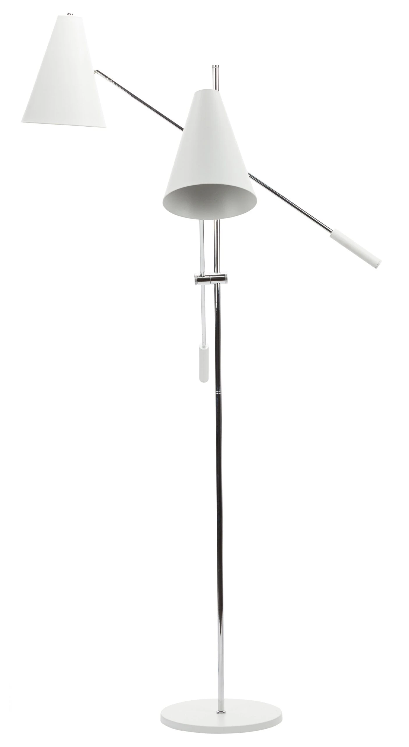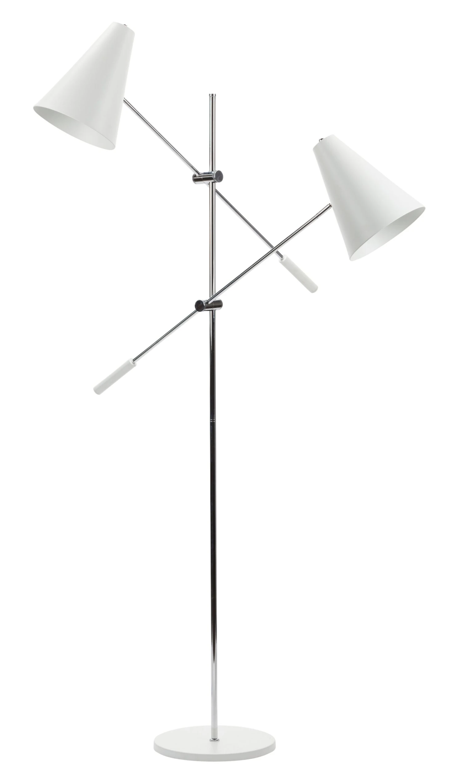Swinging arms and a sleek two-tone finish make this steel floor lamp a smart and stylish fit alongside the bed or sofa.