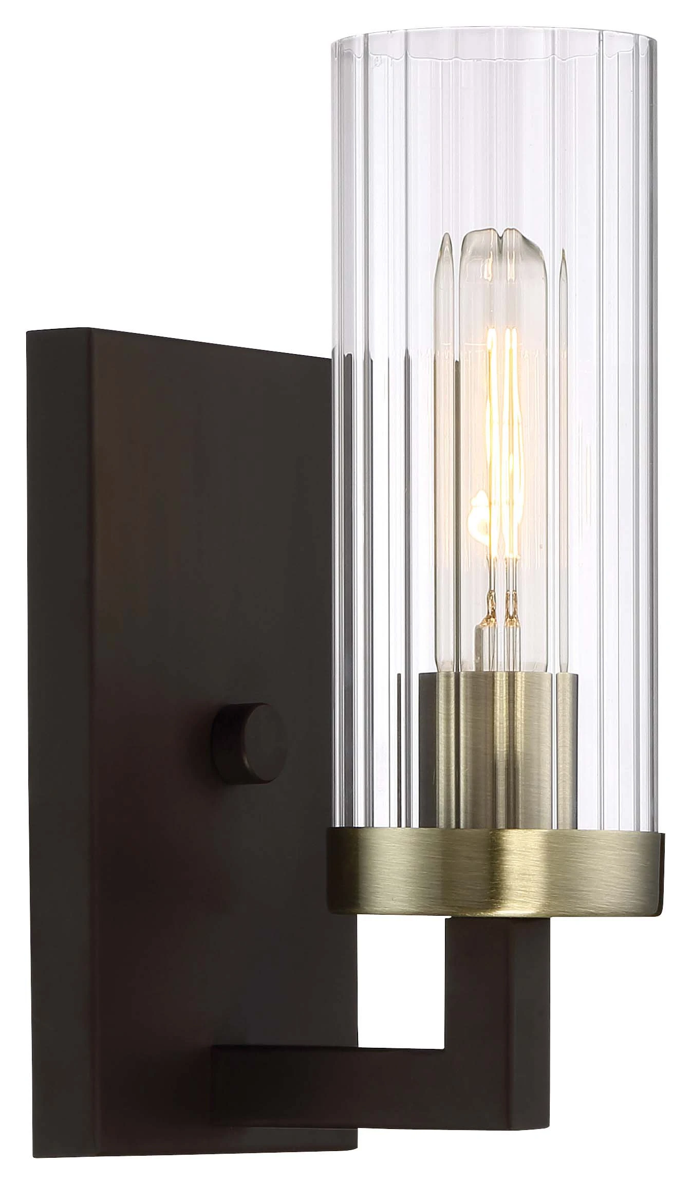 At home in a variety of decors, this sconce is crafted of steel with a clean-lined backplate and ridged glass shade. Hardwired.