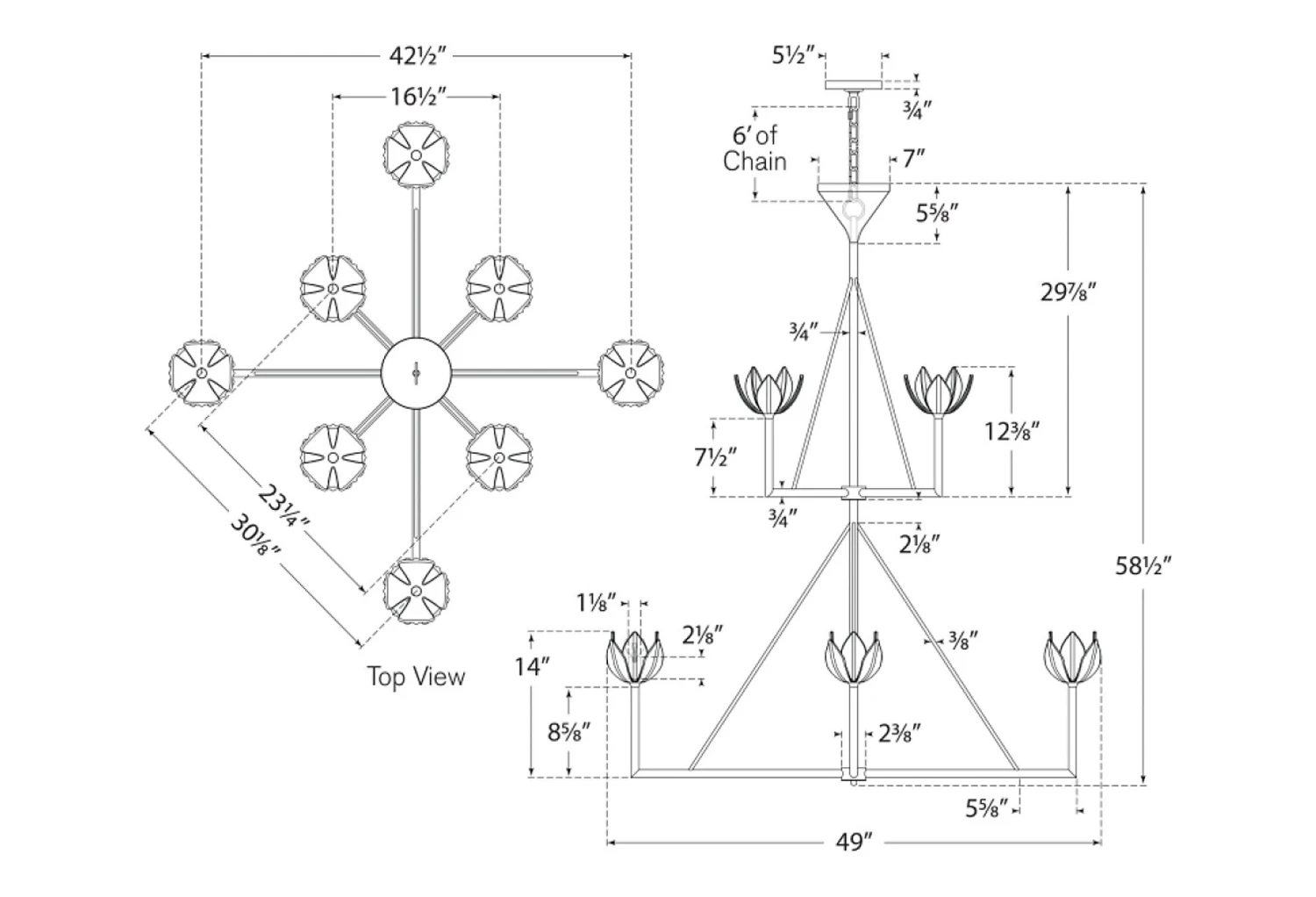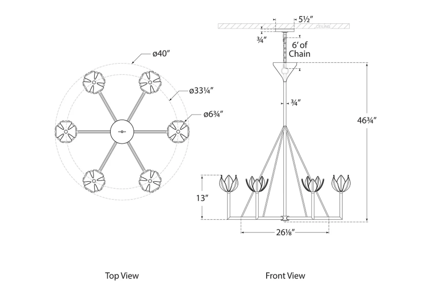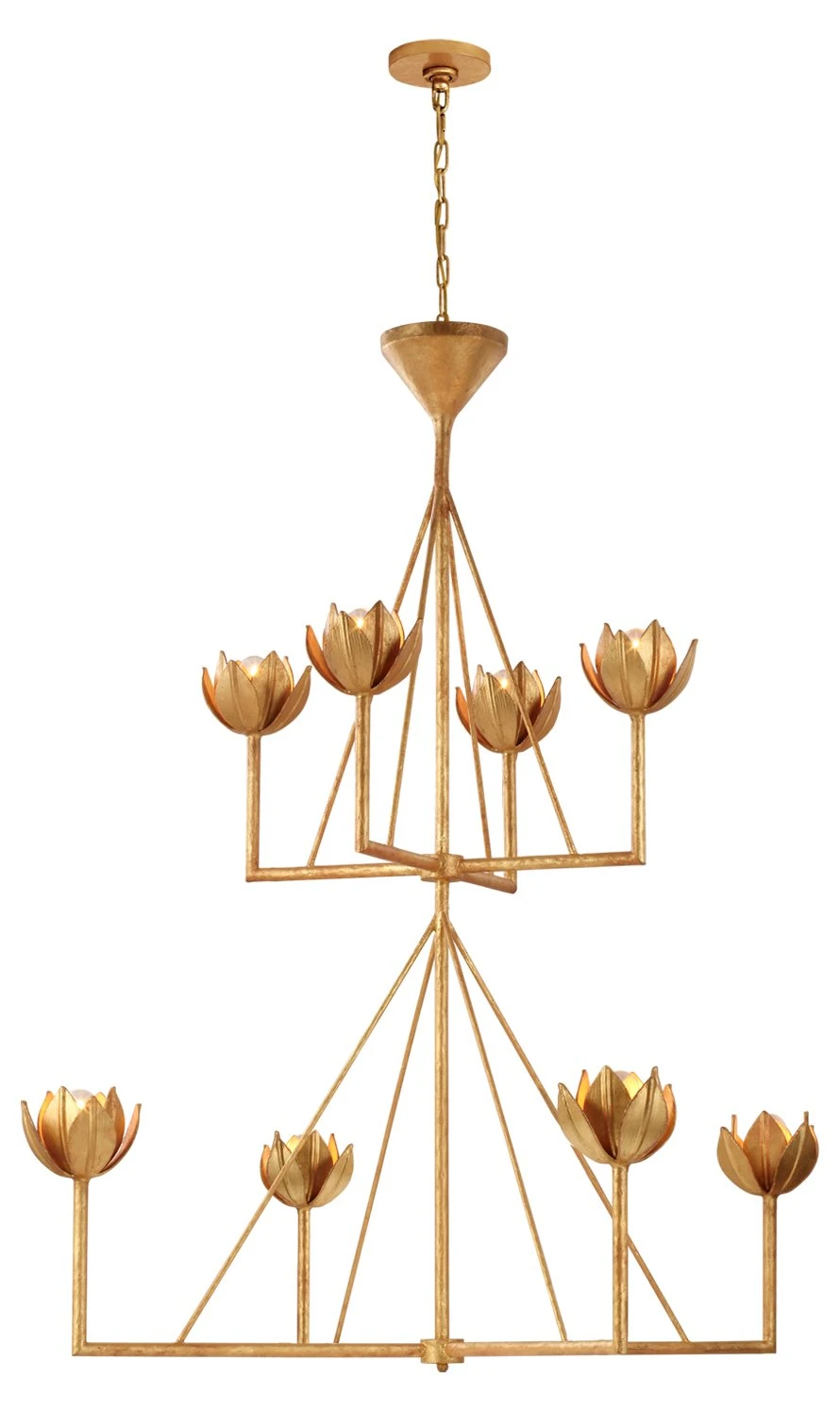 Designed by Julie Neill for Visual Comfort: A subtle way to incorporate botanical elements into your decor, this chandelier is crafted of aluminum and thoughtfully designed with petal-like detailing and an antiqued gold-leaf finish. Hardwired.