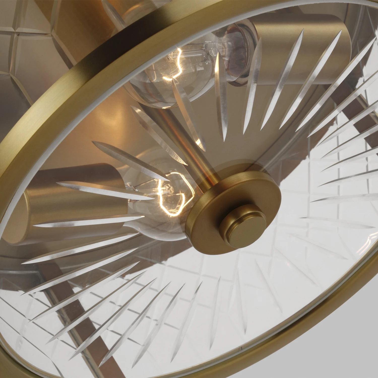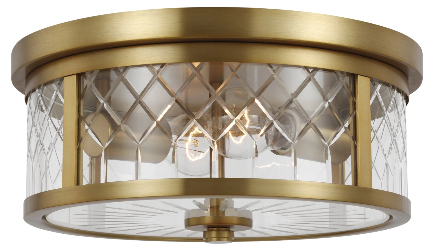Framed in steel with a cut-crystal shade, this Hollywood Regency-inspired flush mount makes a bold statement in any space. Hardwired.