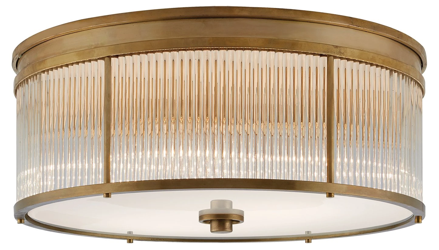 This eye-catching flush mount is accented with clear glass rods for unexpected texture and visual interest. The underside is sealed with white glass to cast a soft glow. Hardwired.