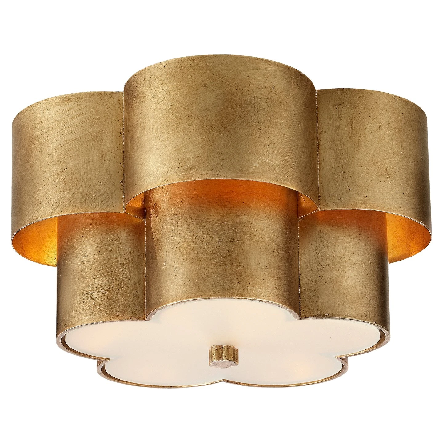 This flush mount’s impressive sense of depth is defined by a robust quatrefoil silhouette and gilded finish. Hardwired.