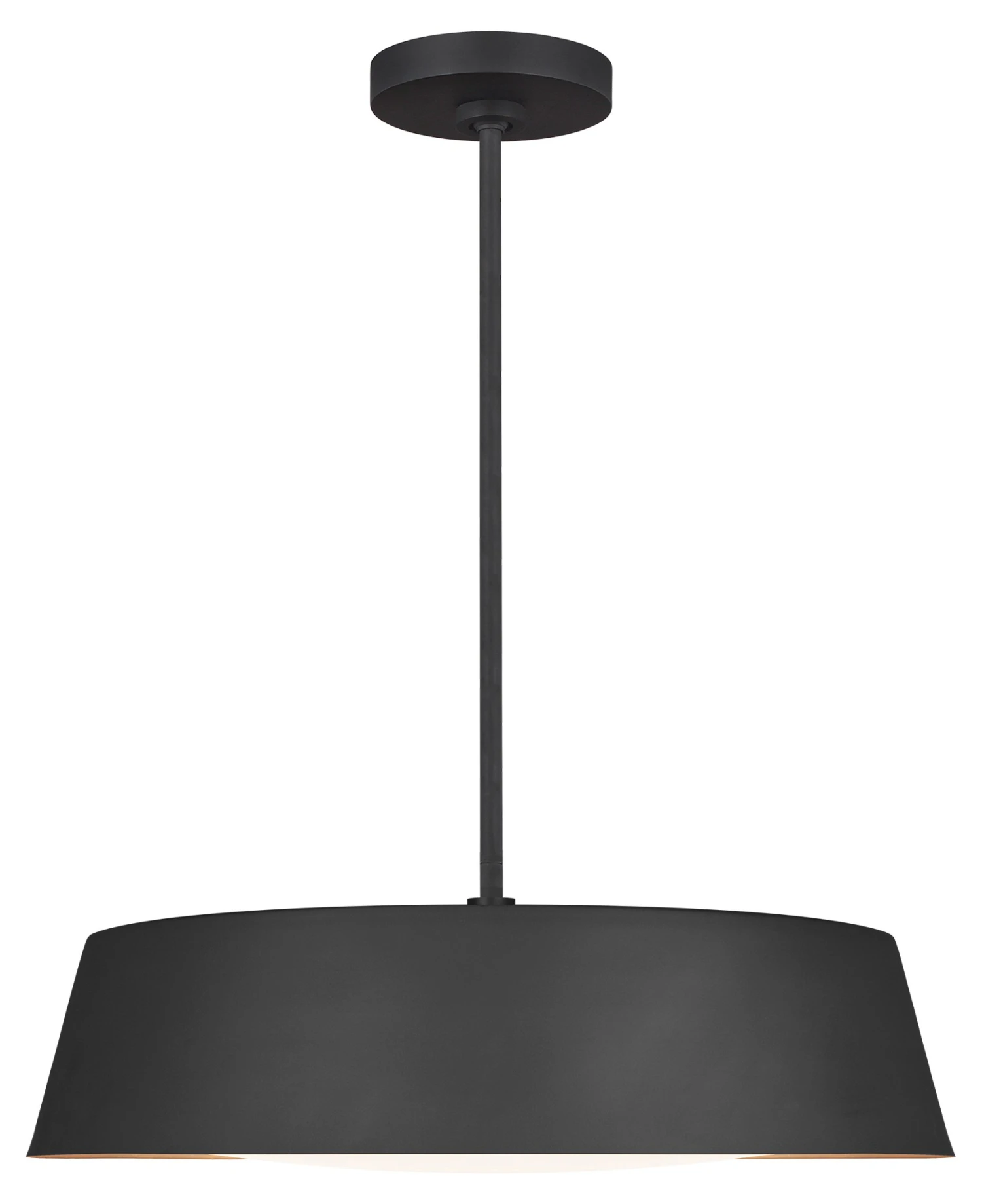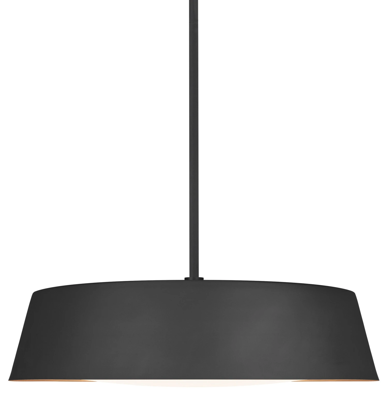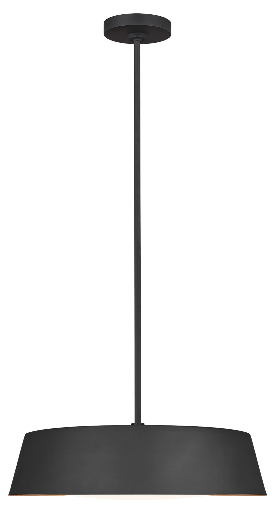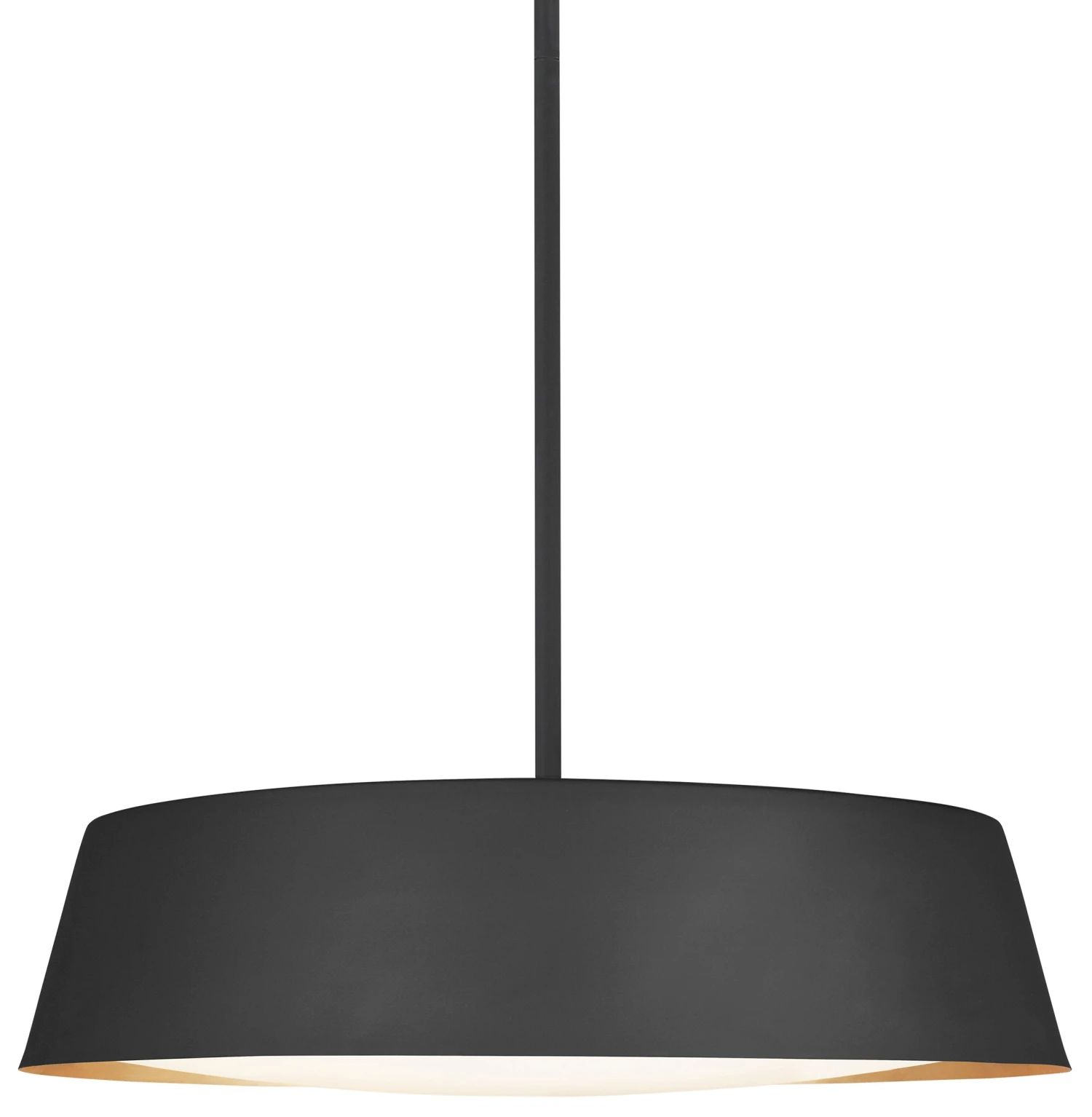 Exuding understated elegance, this contemporary pendant features a low-profile, large-scale silhouette accented with hand-applied gold-leaf on the interior rim of the shade. A silk-screen glass diffuser softens the glow of the fixture’s five bulbs. Hardwired.