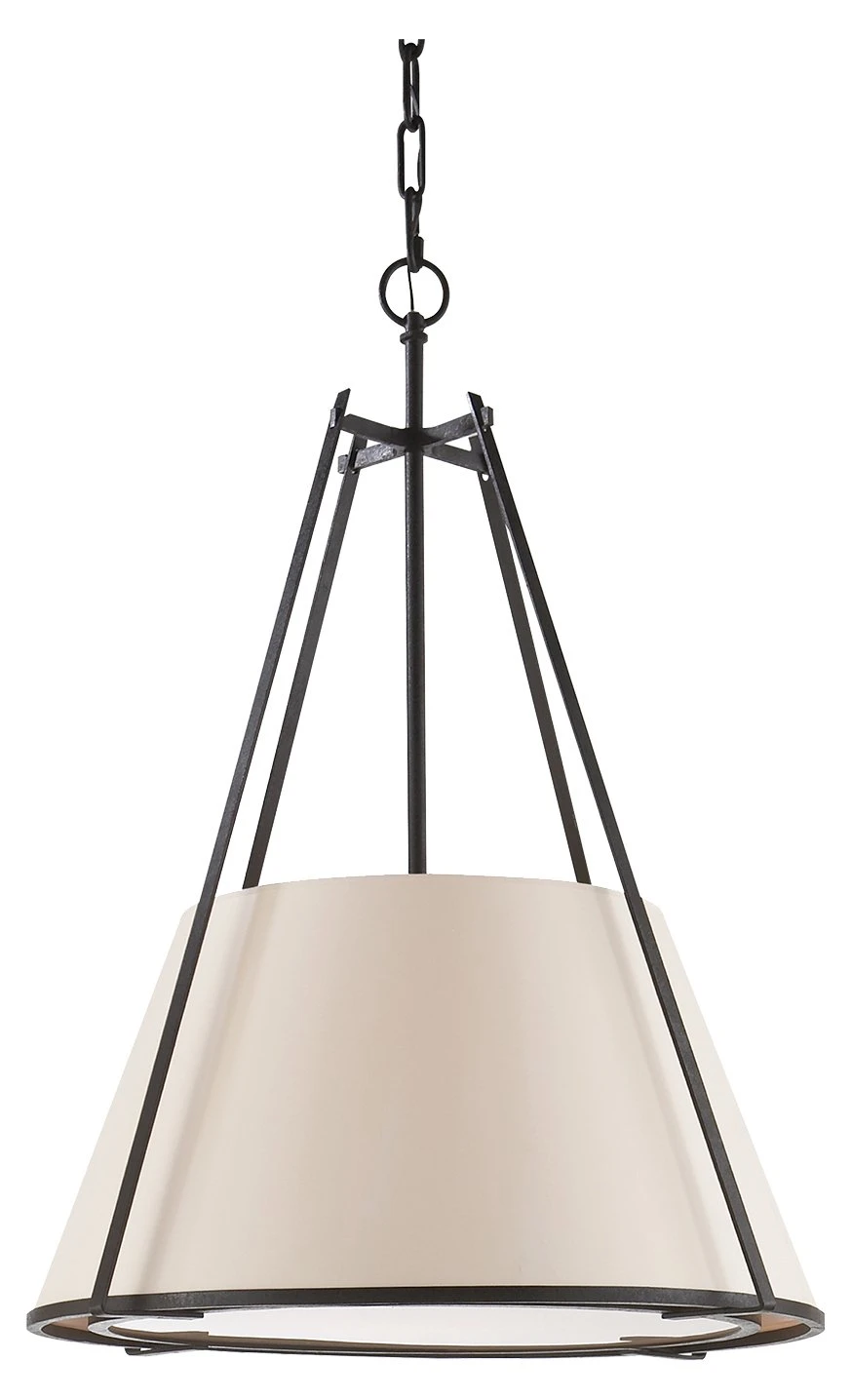 Available online exclusively at One Kings Lane: This pendant from designer Ian K. Fowler features a conical iron frame that perfectly encases an inner paper shade. Hardwired.