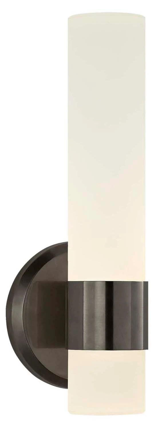 A refined addition to the bath, this sconce features a simple brass frame that holds an elongated etched crystal shade. Because this item is damp rated, it can be used in any room of the home, including the bathroom. Hardwired.