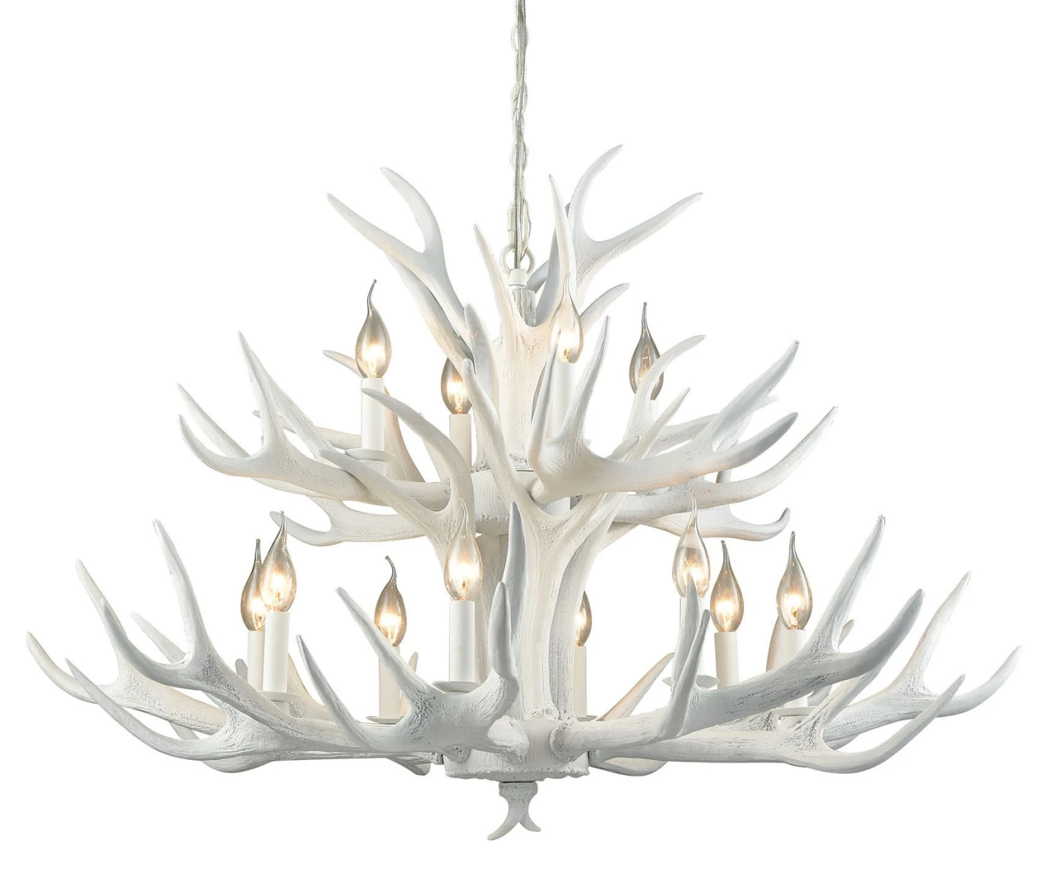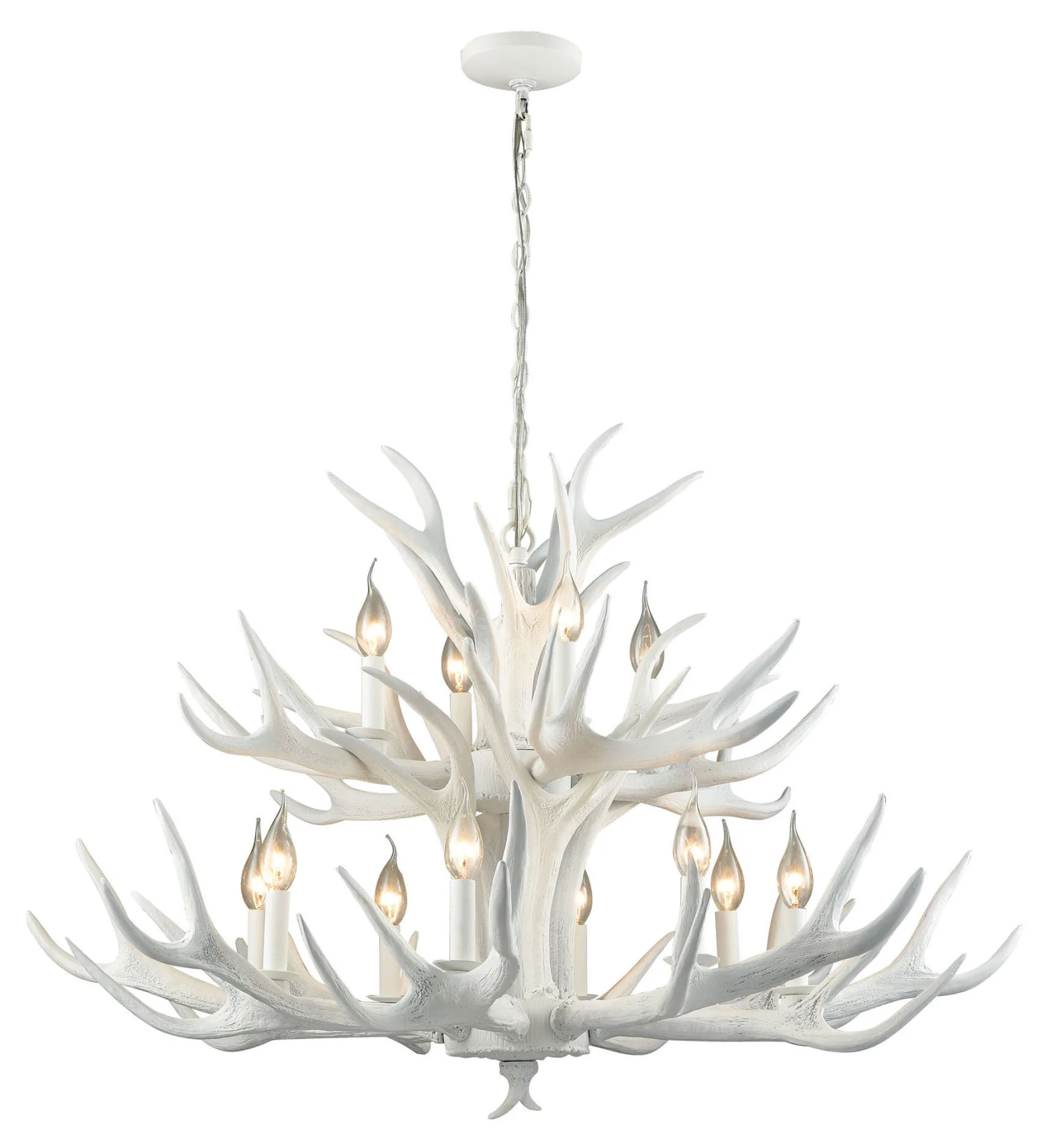 Adorned with faux white antlers, this stunning chandelier channels the beauty of the great outdoors. Hardwired.
