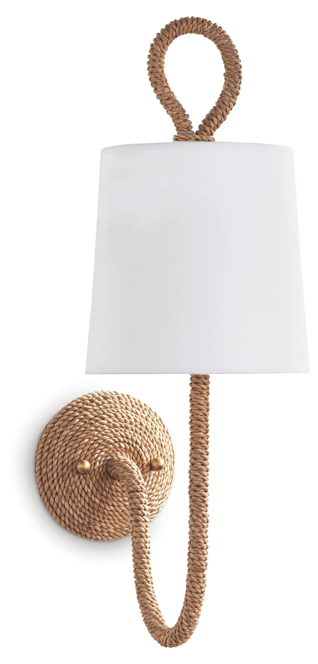 Regina Andrew collaborated with “Coastal Living” magazine to create a collection of lighting that gives a fresh update to timeless seaside style. Full of incredible natural texture, this charming sconce is wrapped in rattan with a wide top loop and natural finish. Balanced by a white linen shade, this piece lends sophistication and a touch of whimsy to any space. Hardwired.