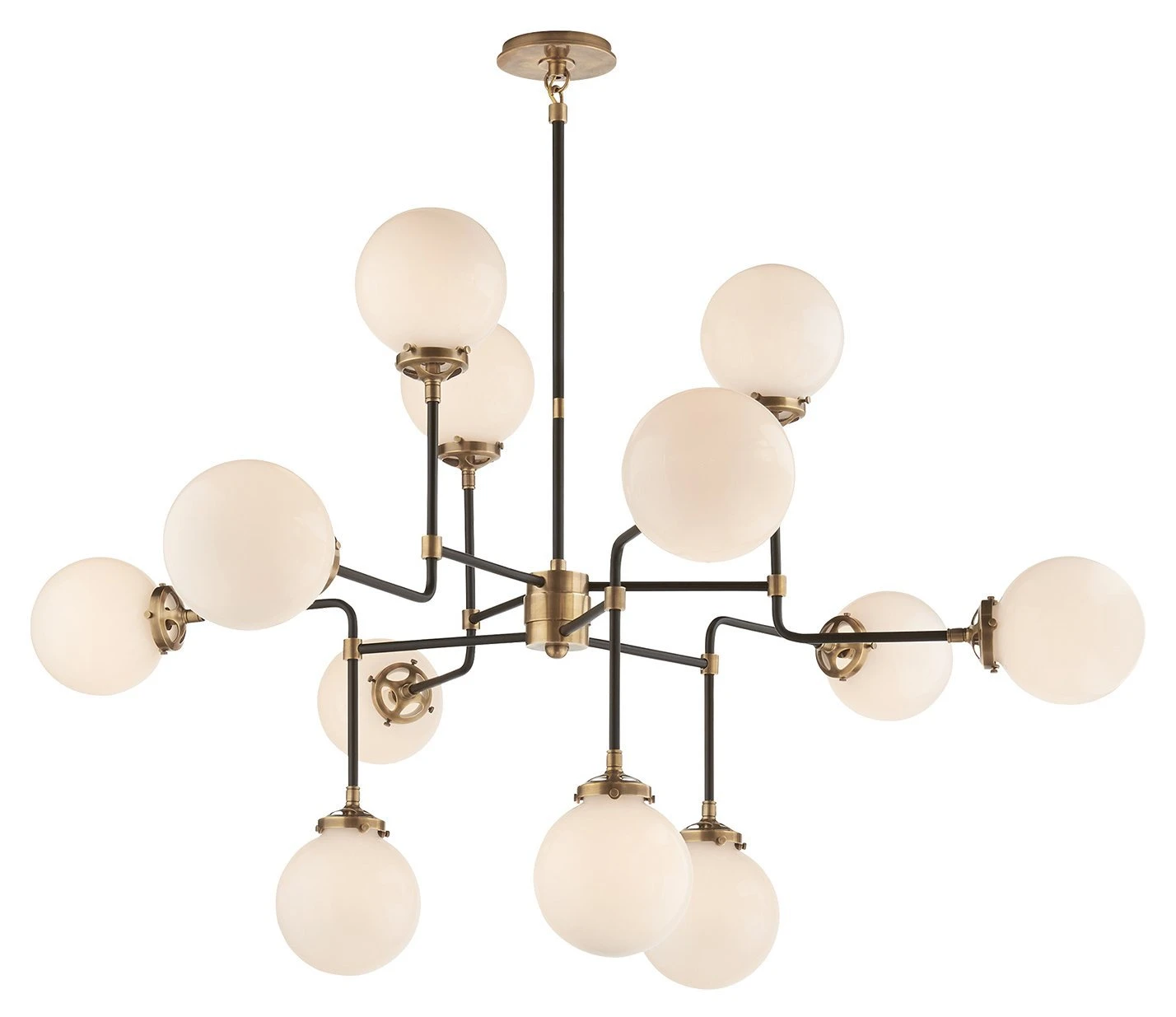 Composed of brass and topped with bubble-like glass shades, this modern piece is both a functional lighting option and three-dimensional piece of art. Hardwired.