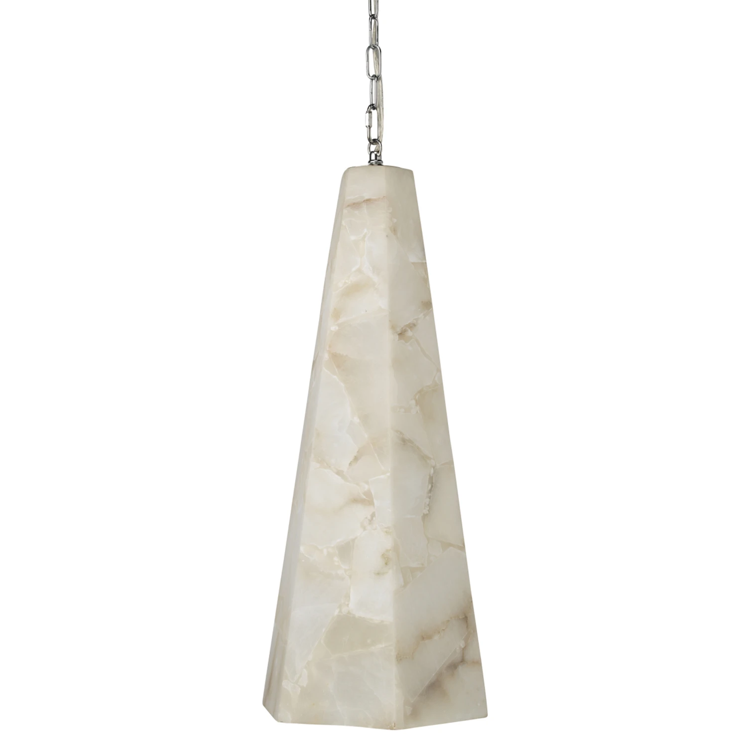 With its tall hexagonal shade crafted of smooth, translucent alabaster and sleek silver hardware, this elegant pendant brings natural beauty and contemporary appeal to any space. Hardwired.More than 10 years ago, artists Jamie Young Jeter and David Jeter took a fateful day trip to Mexico. Filling their car with interesting gardening pots they found in a roadside shop, they returned to LA and instantly sold the lot to a local florist, thus discovering a niche opportunity. With that, Jamie Young Co. was born. Today it offers home decor from all over the globe.