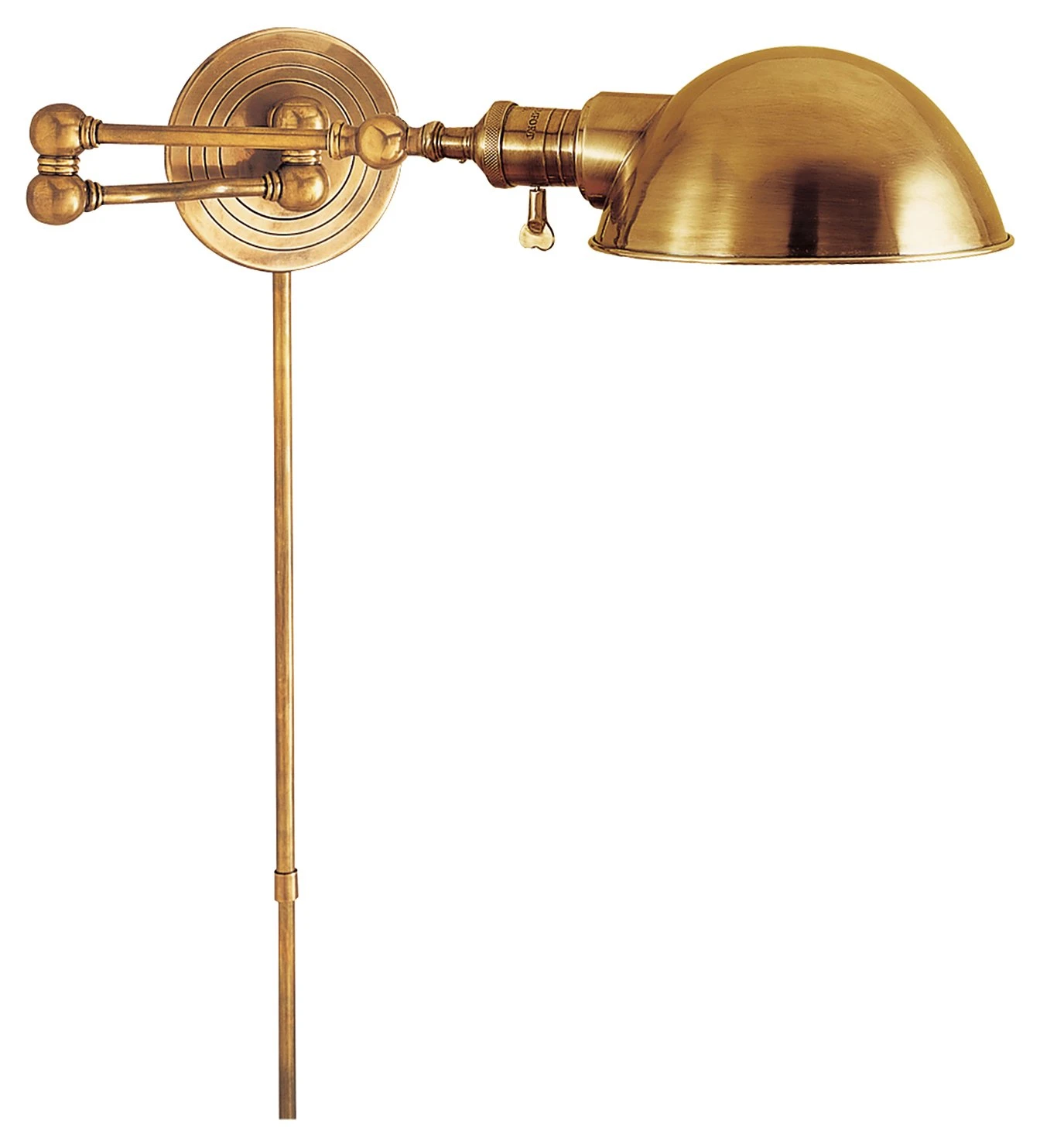 This simple swing-arm wall lamp, finished in brass, adds targeted illumination and a subtle industrial feel to any space.