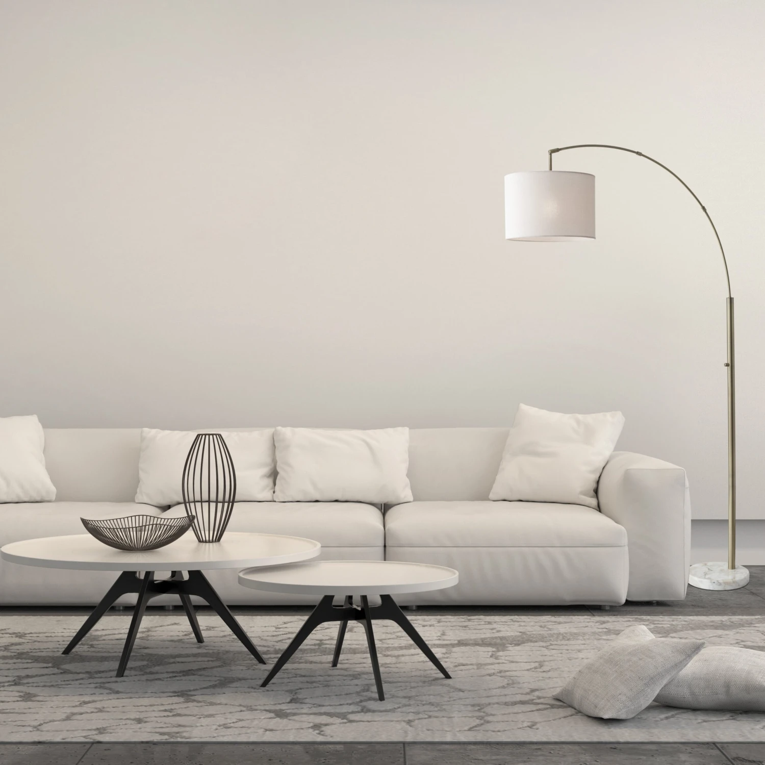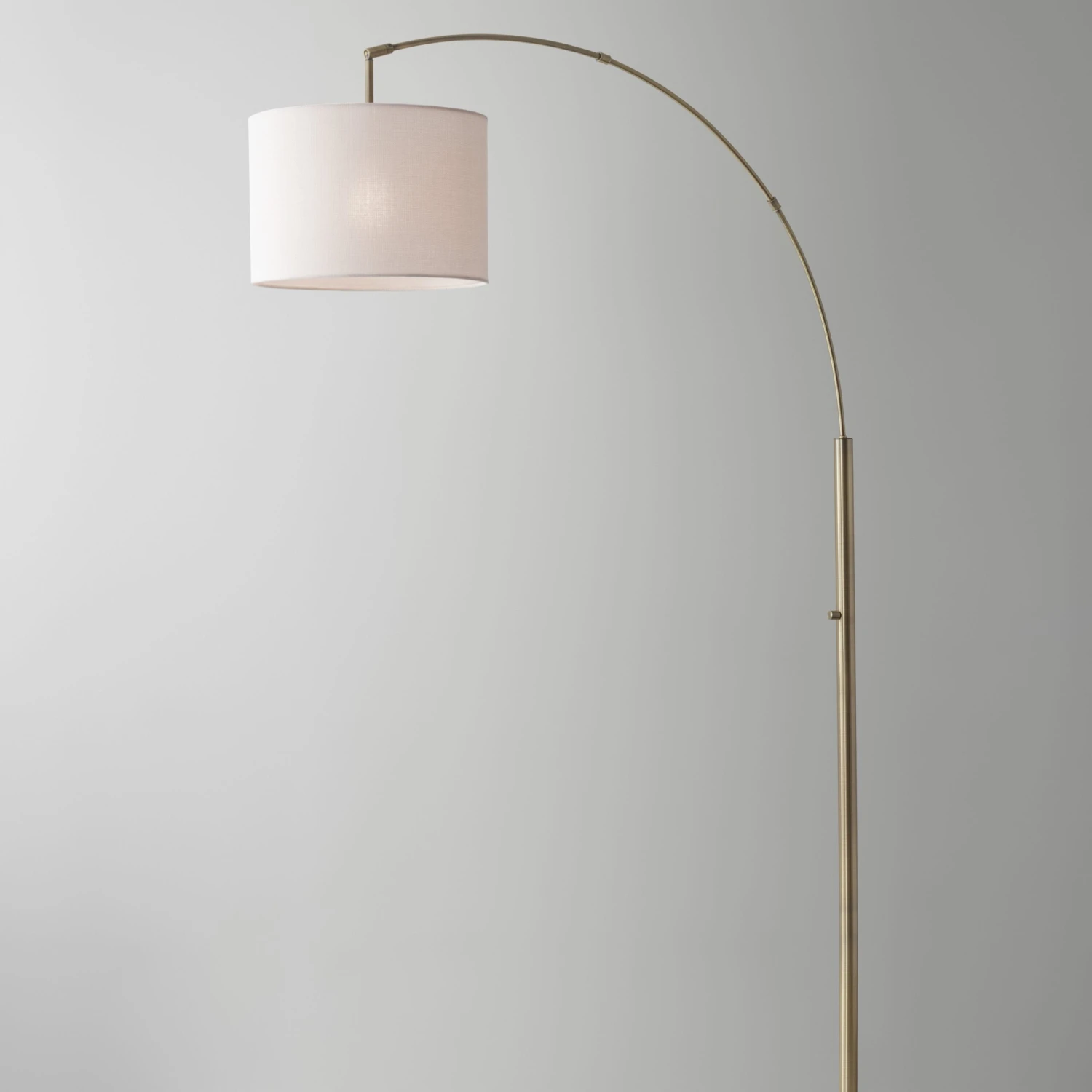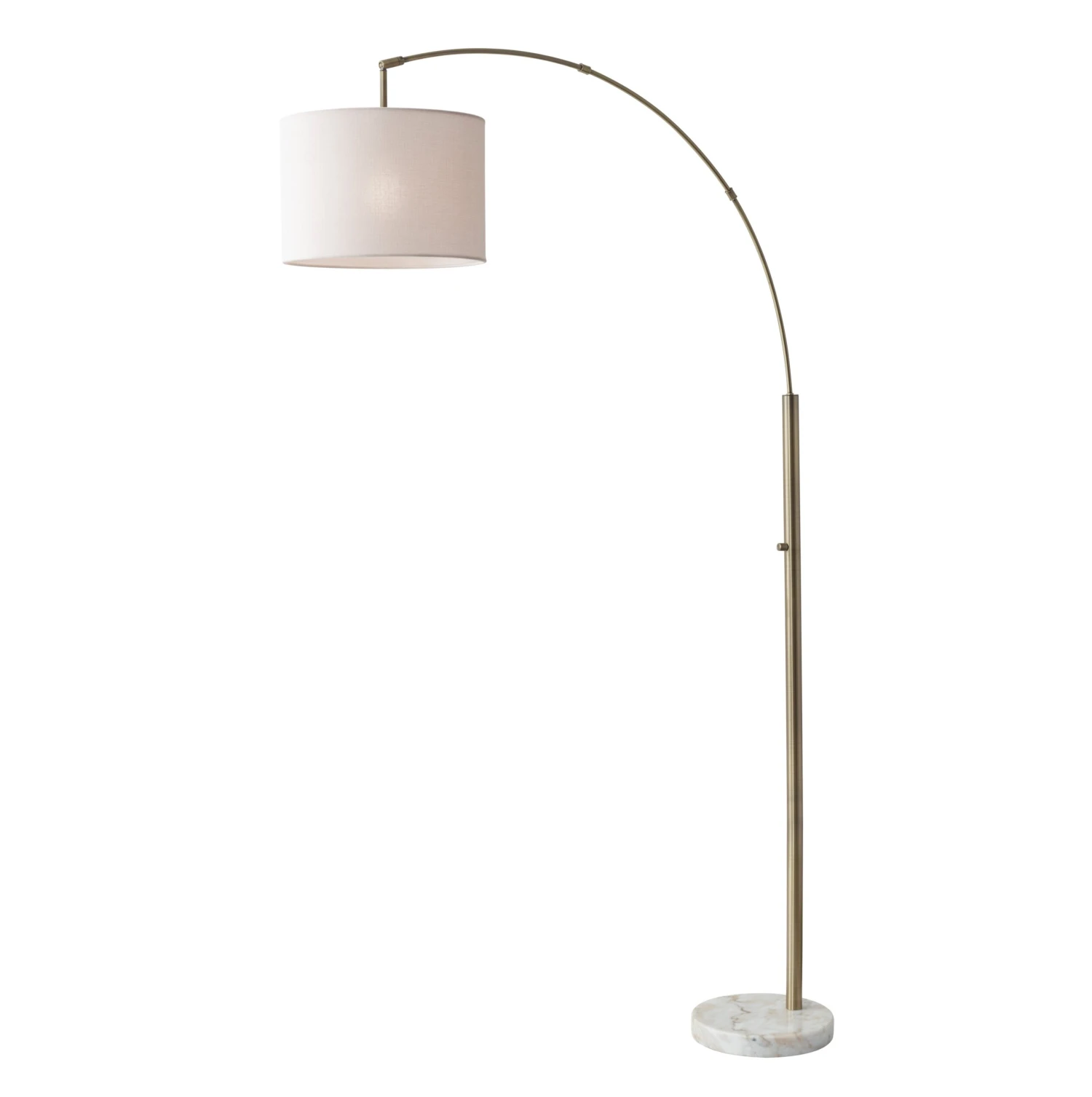 Smartly designed with an adjustable, arcing arm mounted to a swirling marble plinth, we love this steel floor lamp suspended above a desk or sofa. A crisp linen shade casts a bright, even glow from above.