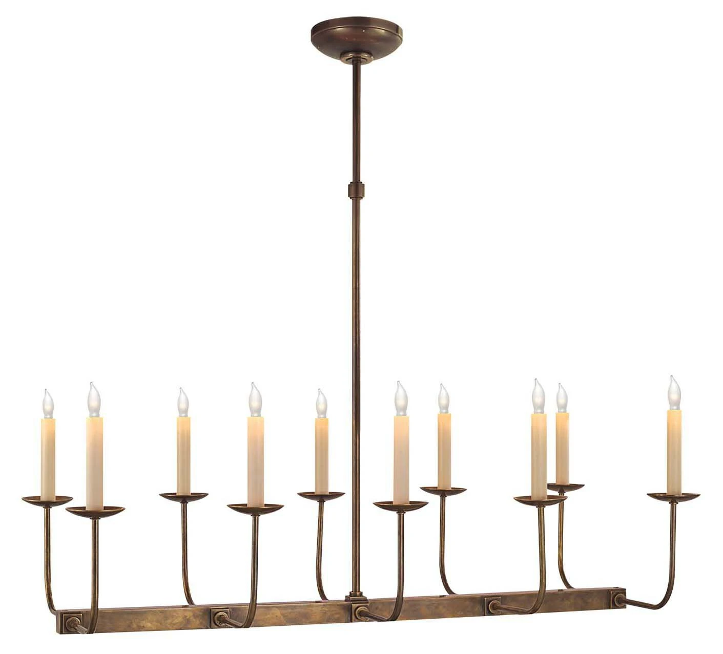 This linear fixture from legendary designer E. F. Chapman is crafted entirely of brass with a hand-rubbed, antiqued finish. Hardwired.