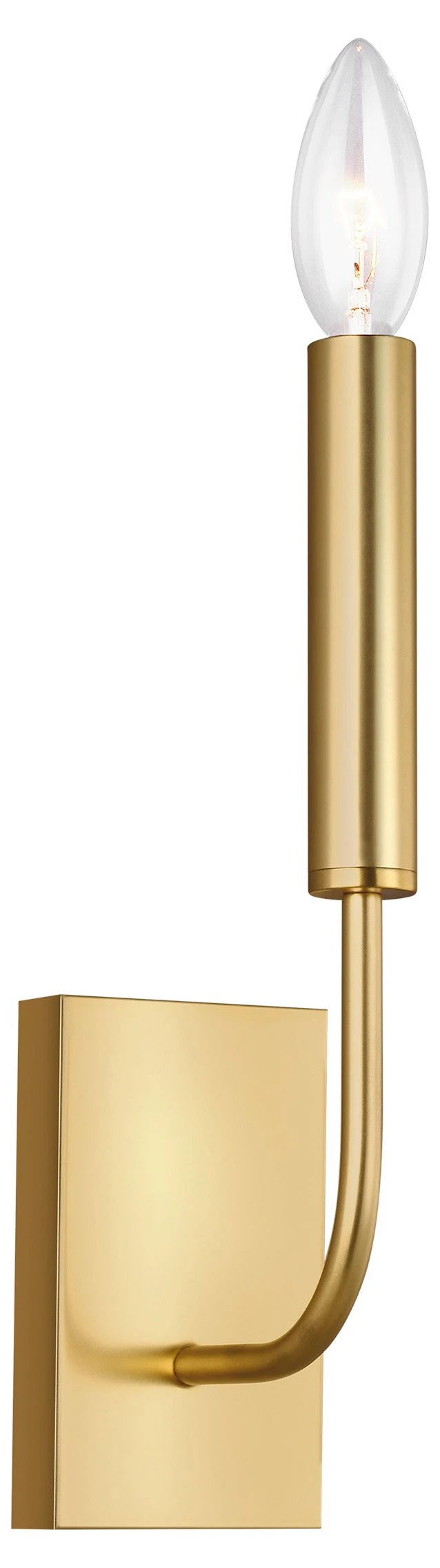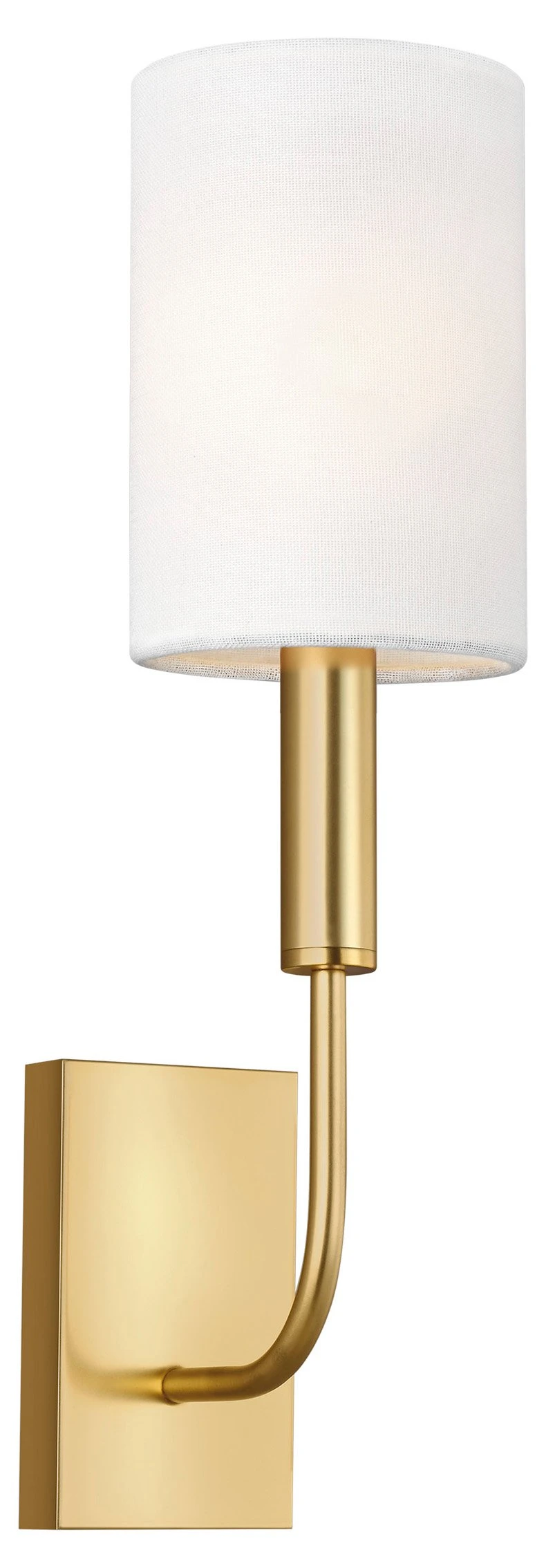 Crafted of steel in a burnished brass finish, this wall sconce features a graceful, seamless curvature and a elongated tubular arm that lends fluidity and modern appeal to its classic silhouette. A cylindrical white linen shade completes the design. Hardwired.