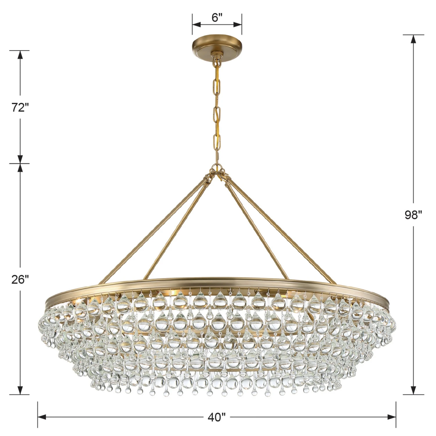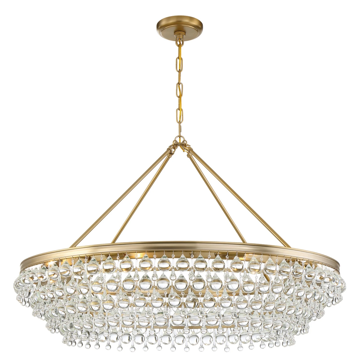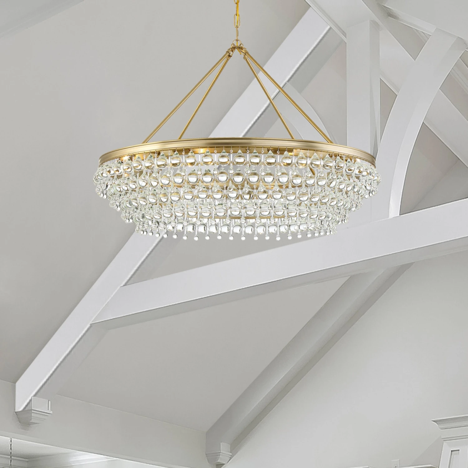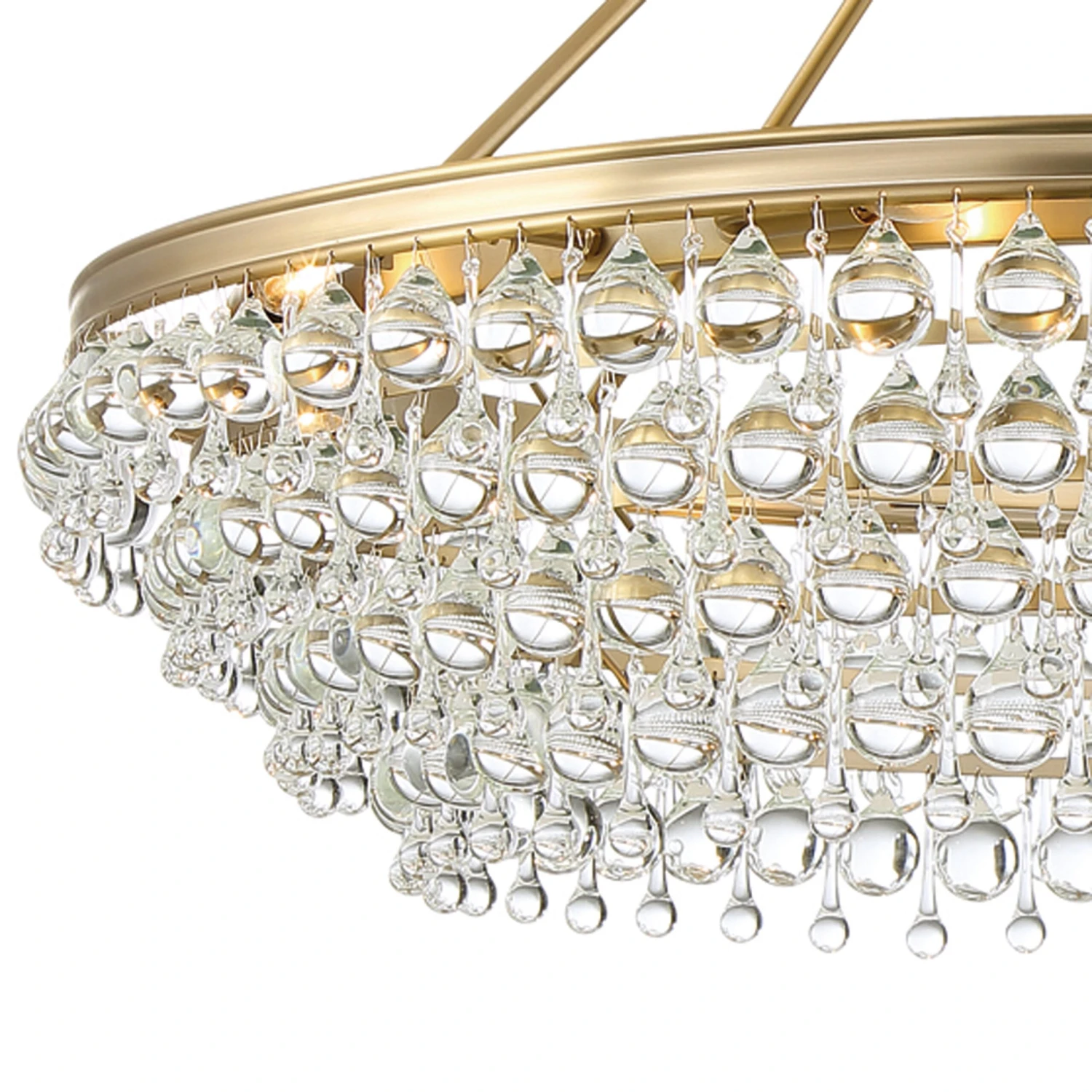 This glamorous flush mount glimmers with scores of clear glass balls and teardrops descending from a gleaming gold fixture. Hardwired.