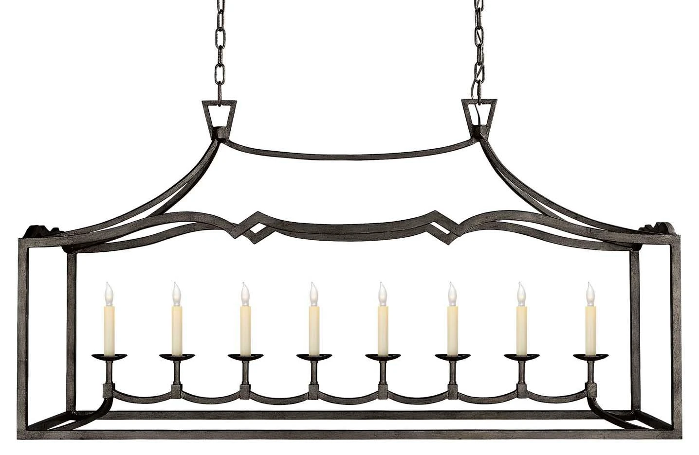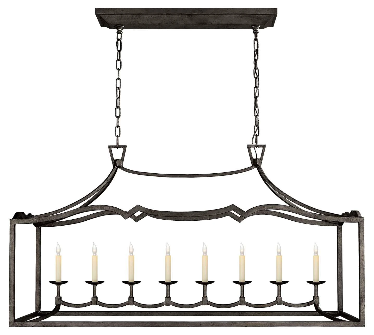 We love how the sweeping silhouette of this E. F. Chapman design really comes to life when rendered in an aged iron finish. Eight candlestick lights complete the classic look. Hardwired.