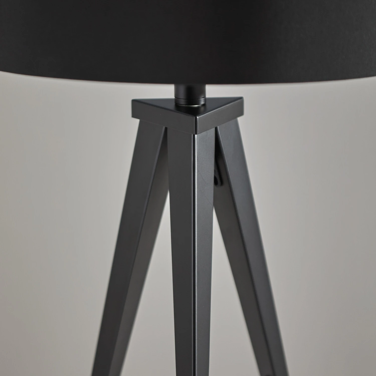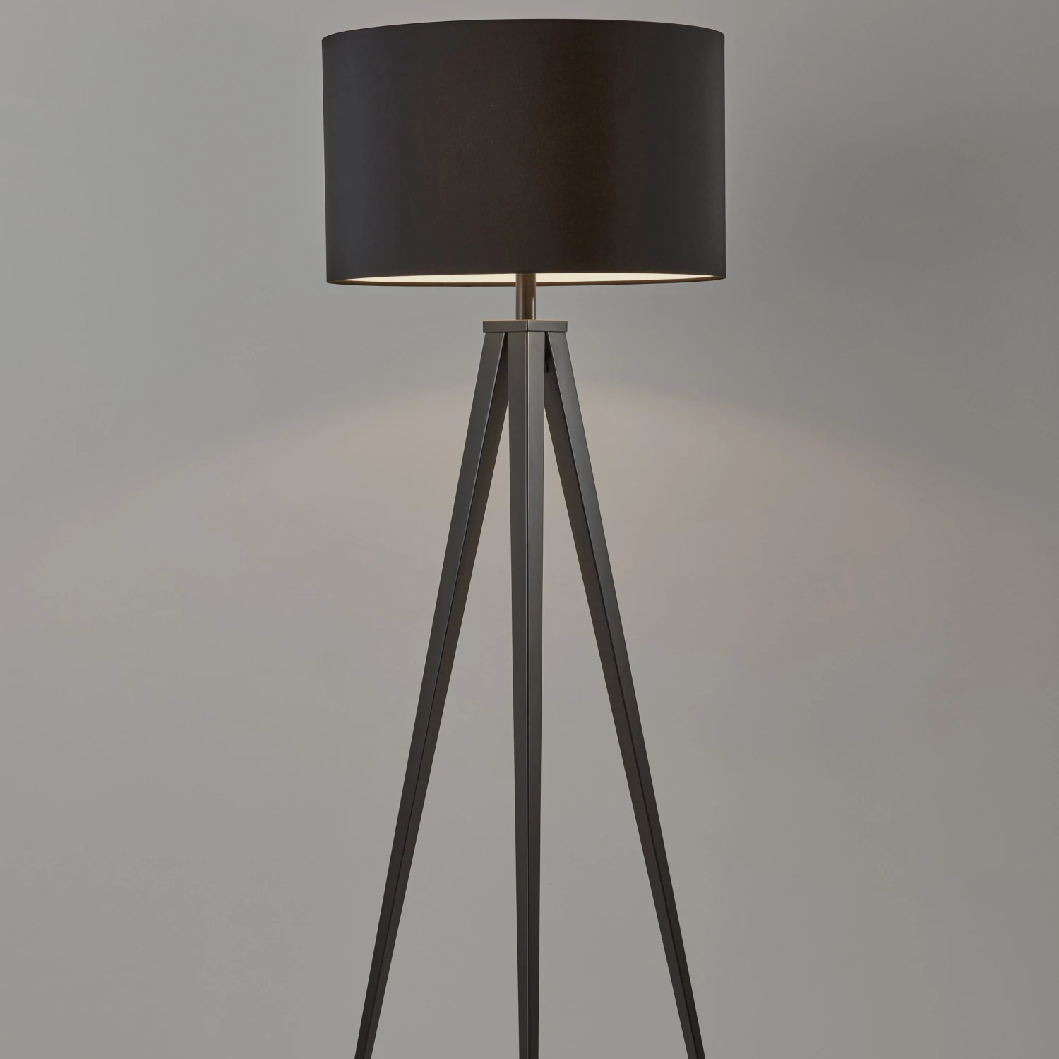 The black finish of the metal legs and the curvy drum shade accentuate the sculptural sleekness of this tripod floor lamp.