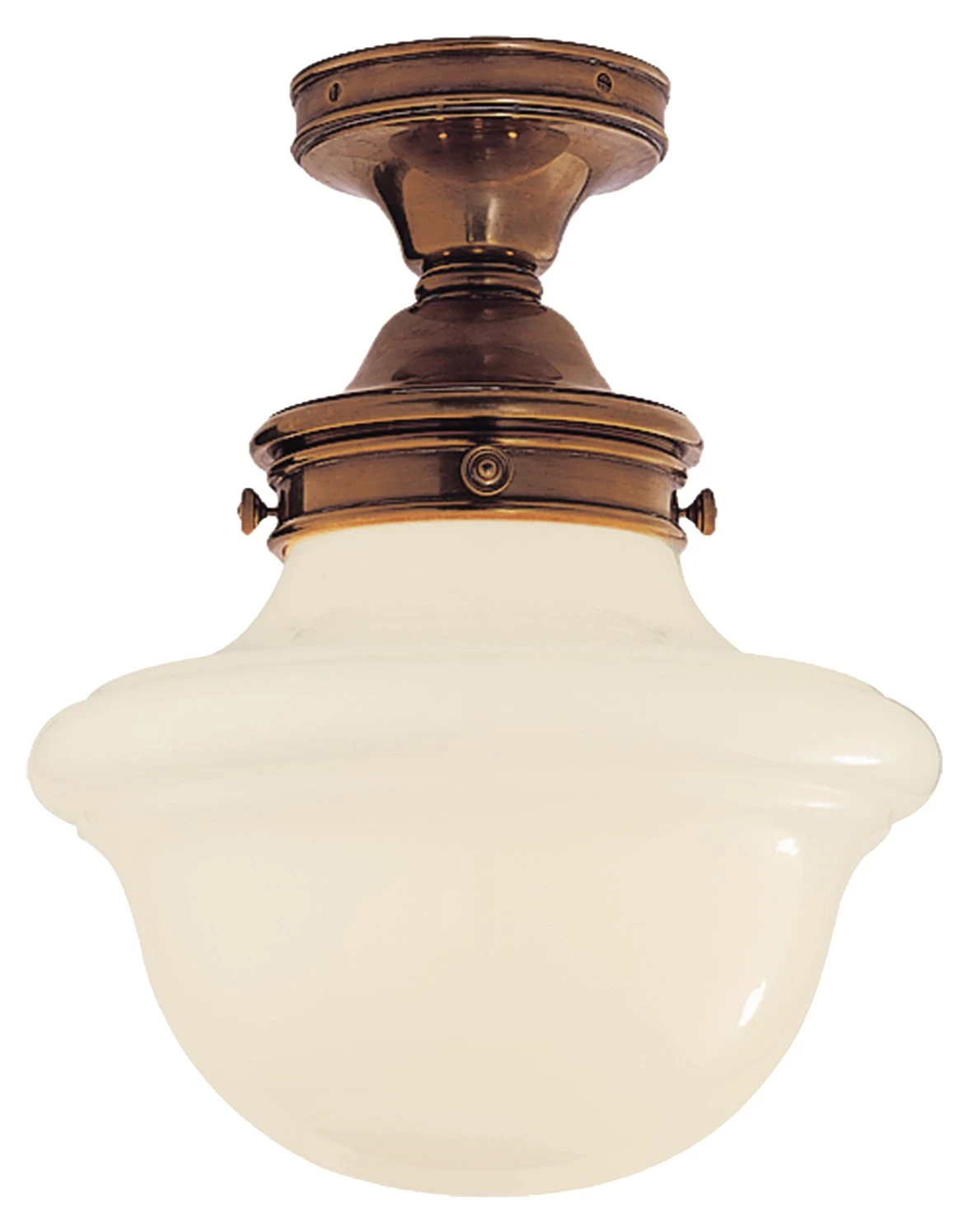 Available online exclusively at One Kings Lane: This semi-flush mount from designer Alexa Hampton is crafted of brass with a white glass shade and hand-rubbed, antiqued finish. Hardwired.