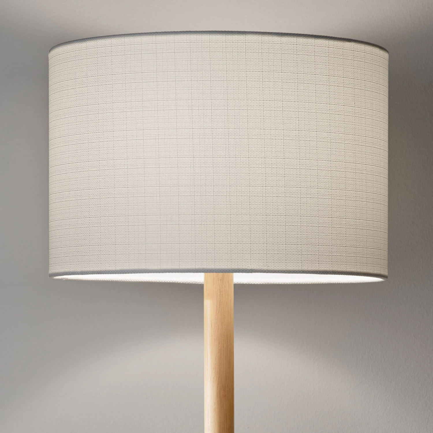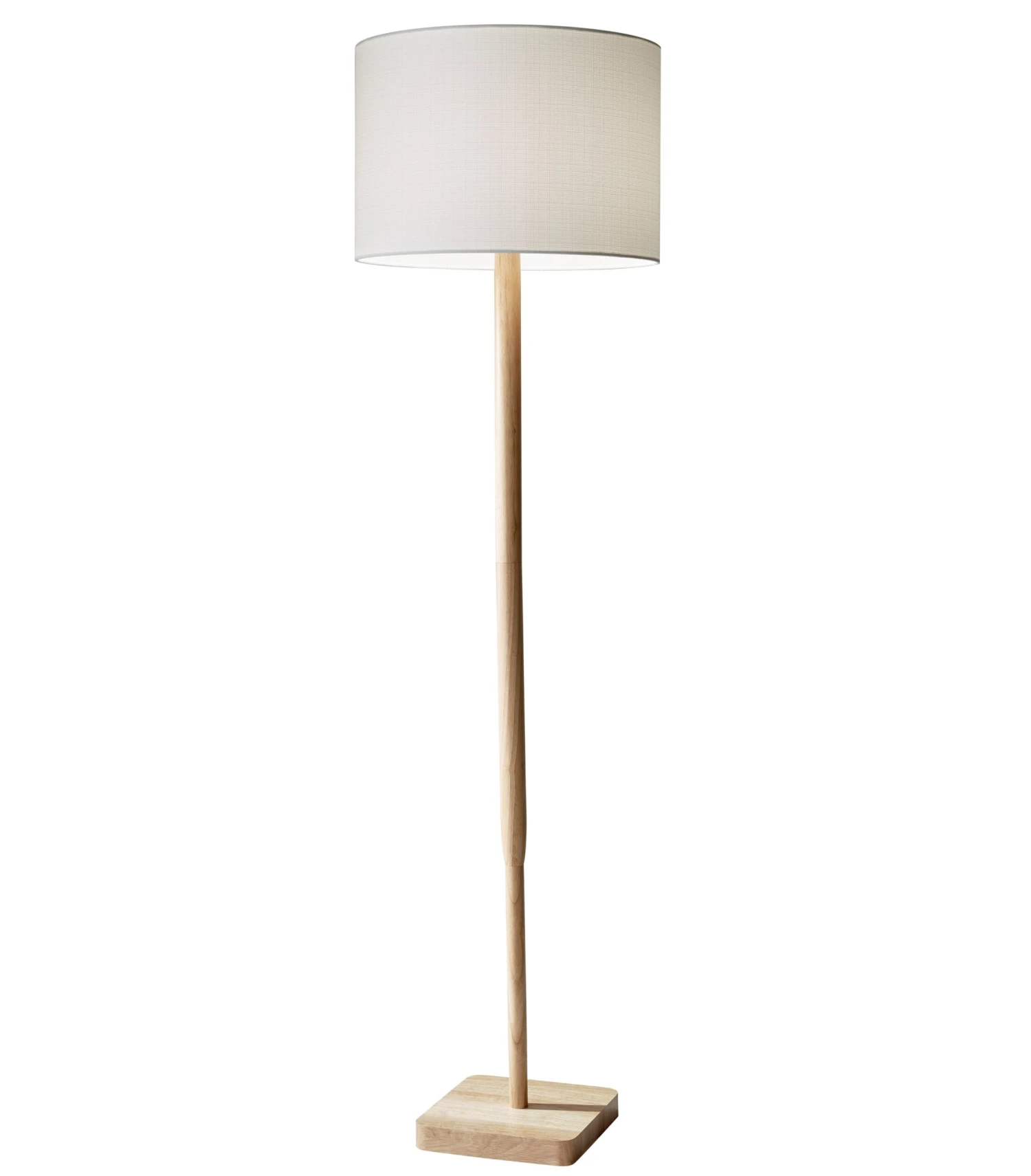 An easy fit for any style of decor, this simple floor lamp showcases a richly figured rubberwood base set below a classic drum shade.