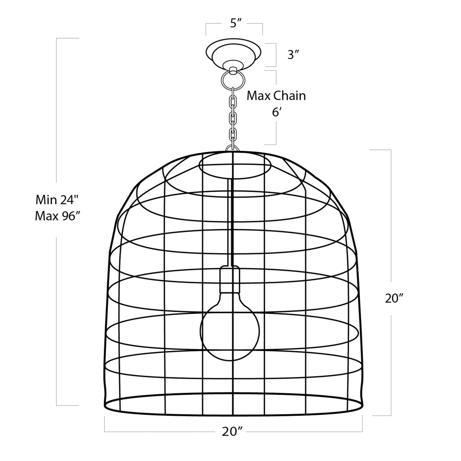 The Fresco Metal Pendant is fabricated of iron that has been expertly fashioned to give a light and airy appearance. The woven metal basket creates interesting light play when lit and functions as a lovely sculptural piece when not. Place this fixture over a dining table, kitchen island or accent a corner of a living room or bedroom with the warm glow of this organic beauty. Hardwired.