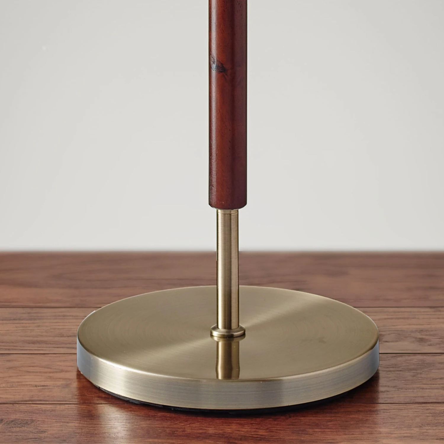 At home in any style of decor, this floor lamp features a walnut-and-antiqued-brass body beautifully balanced by a natural linen shade.