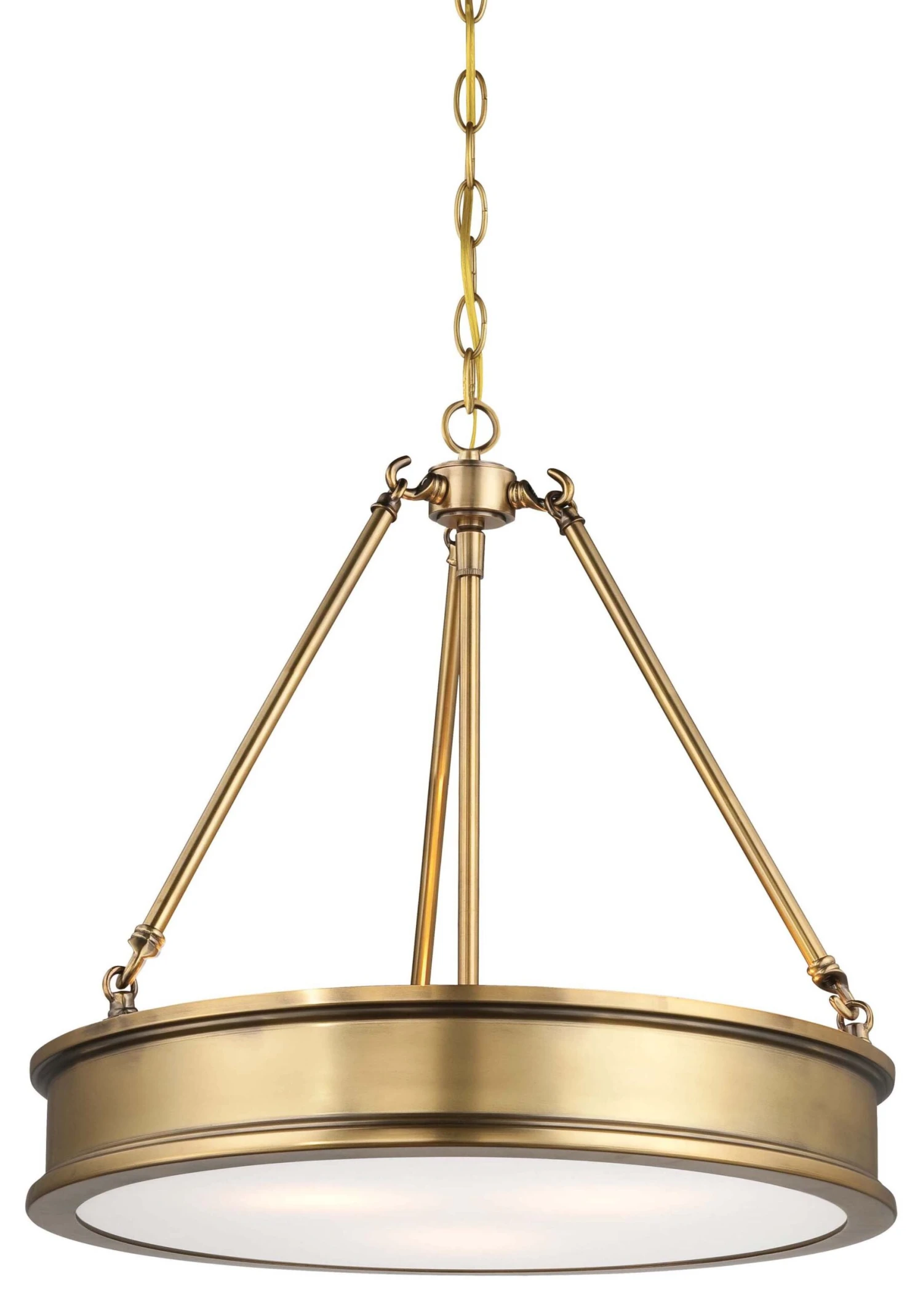 Sleek lines and a gleaming gold finish make this three-light pendant an ideal addition to any modern home. Hardwired.