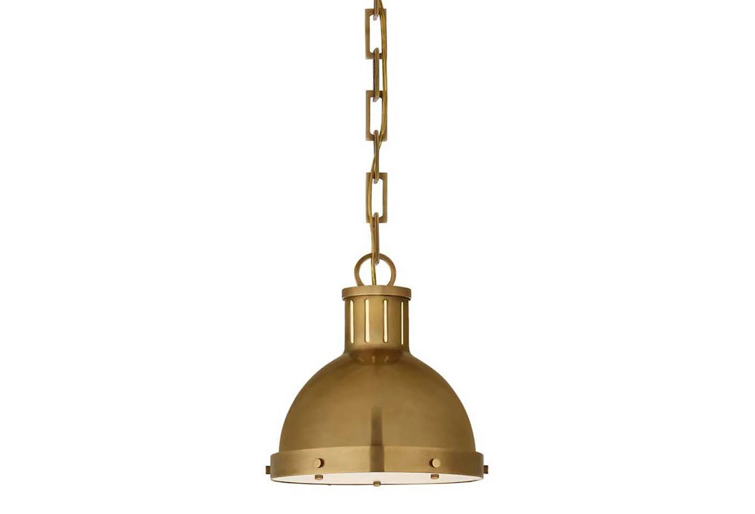 Crafted of hand-rubbed antiqued brass, this pendant adds vintage inspiration to a room without overwhelming it. A great addition to an entryway, dining room, or kitchen, this piece is finished with an acrylic diffuser. Hardwired.