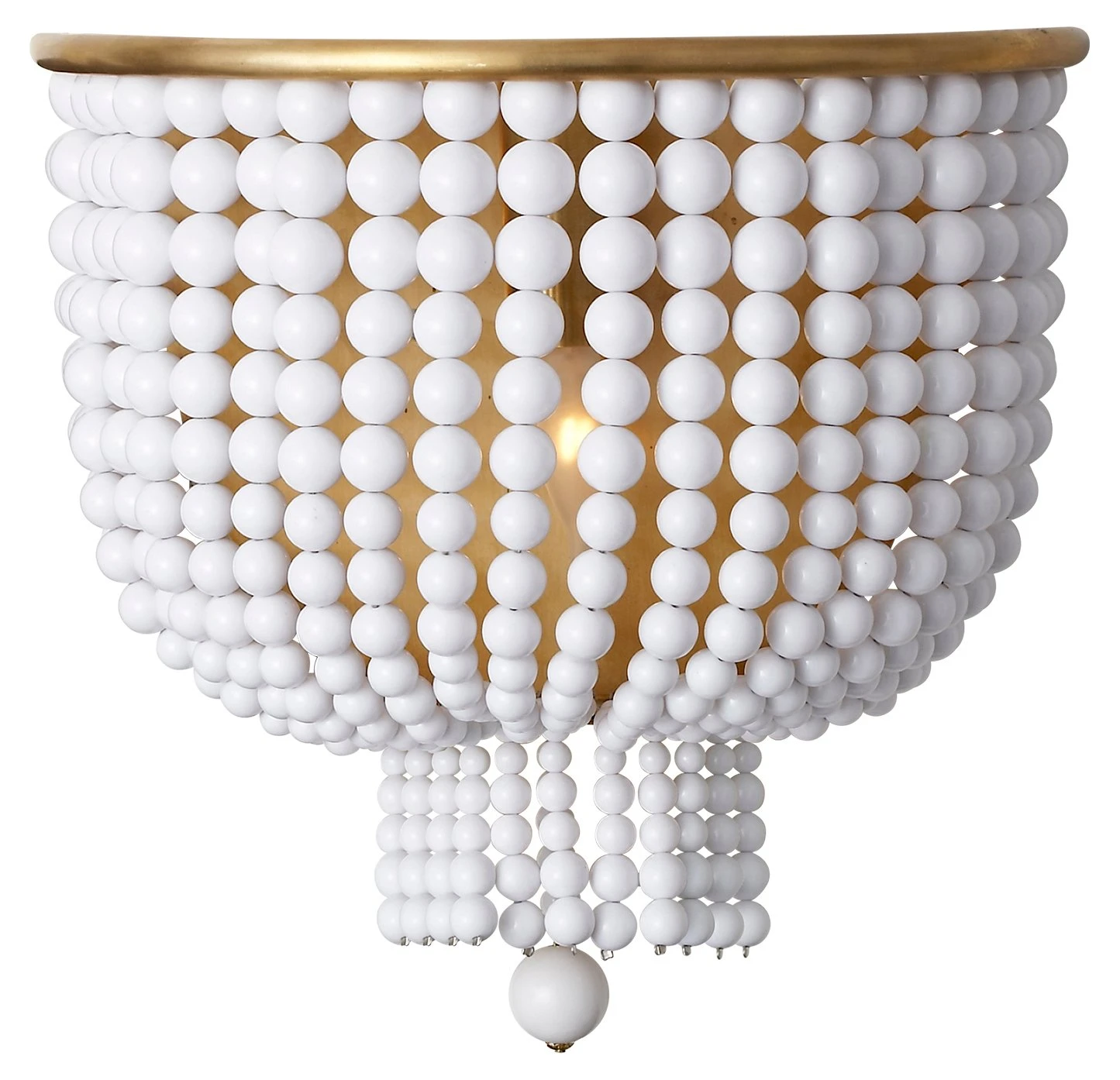 Dress the room in elegant texture with this sconce, draped in a waterfall of white beads with burnished silver-leaf framework. Hardwired.