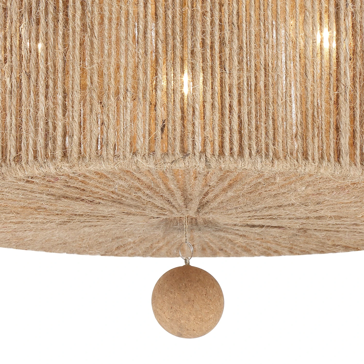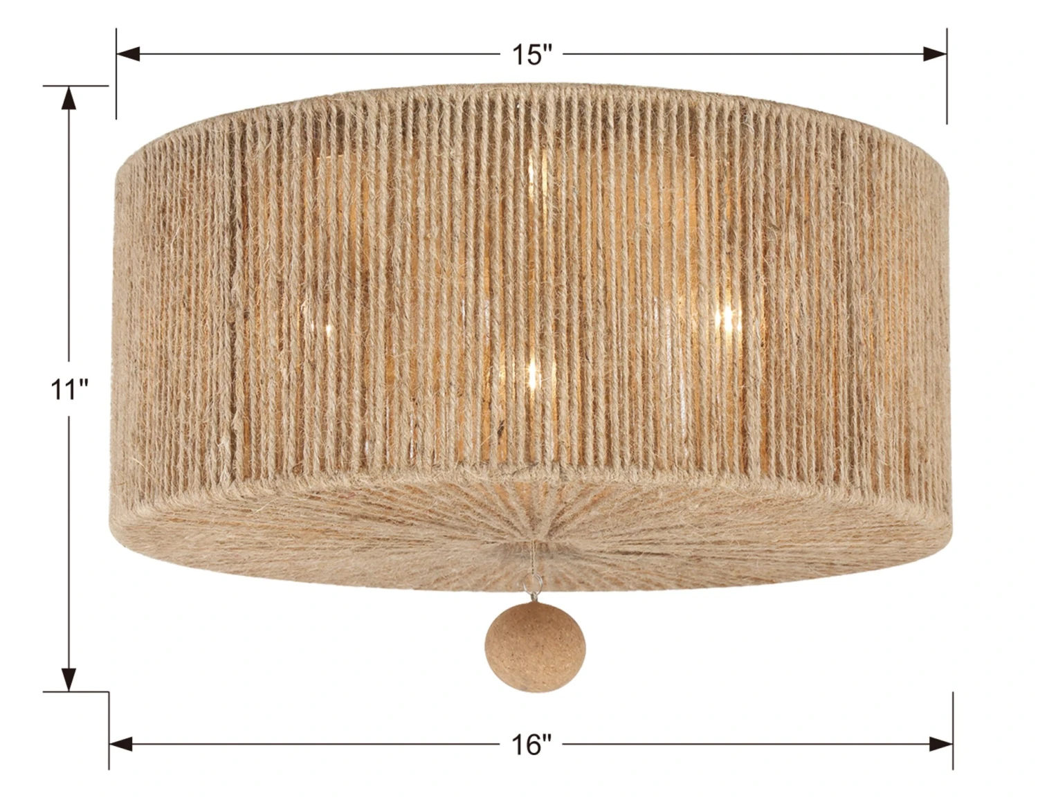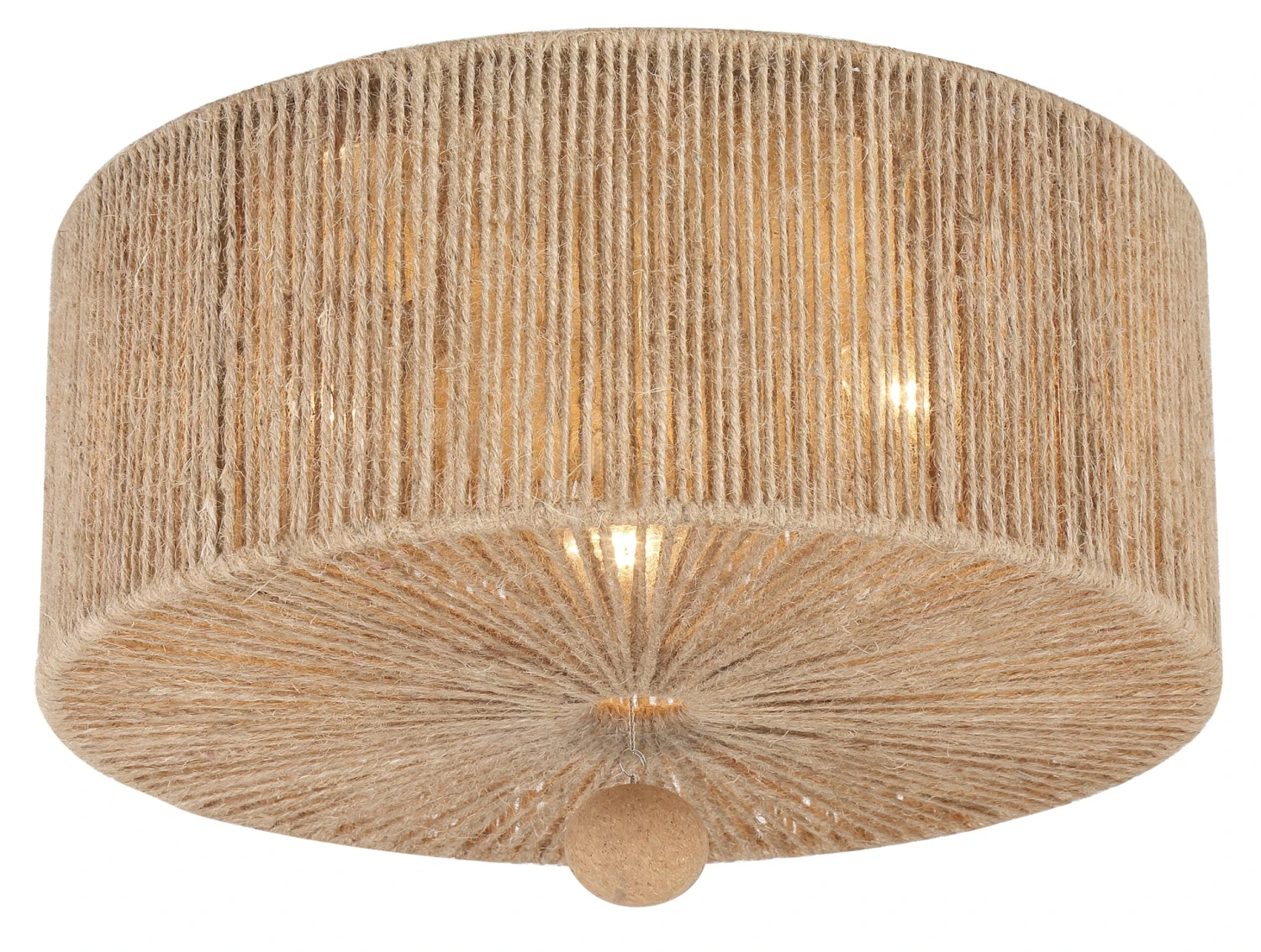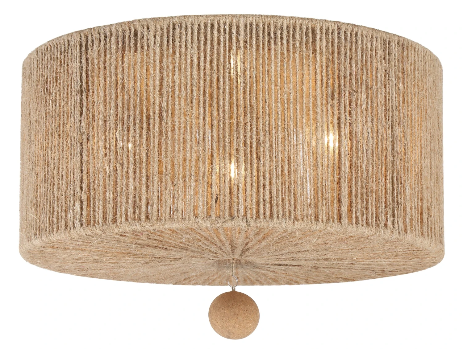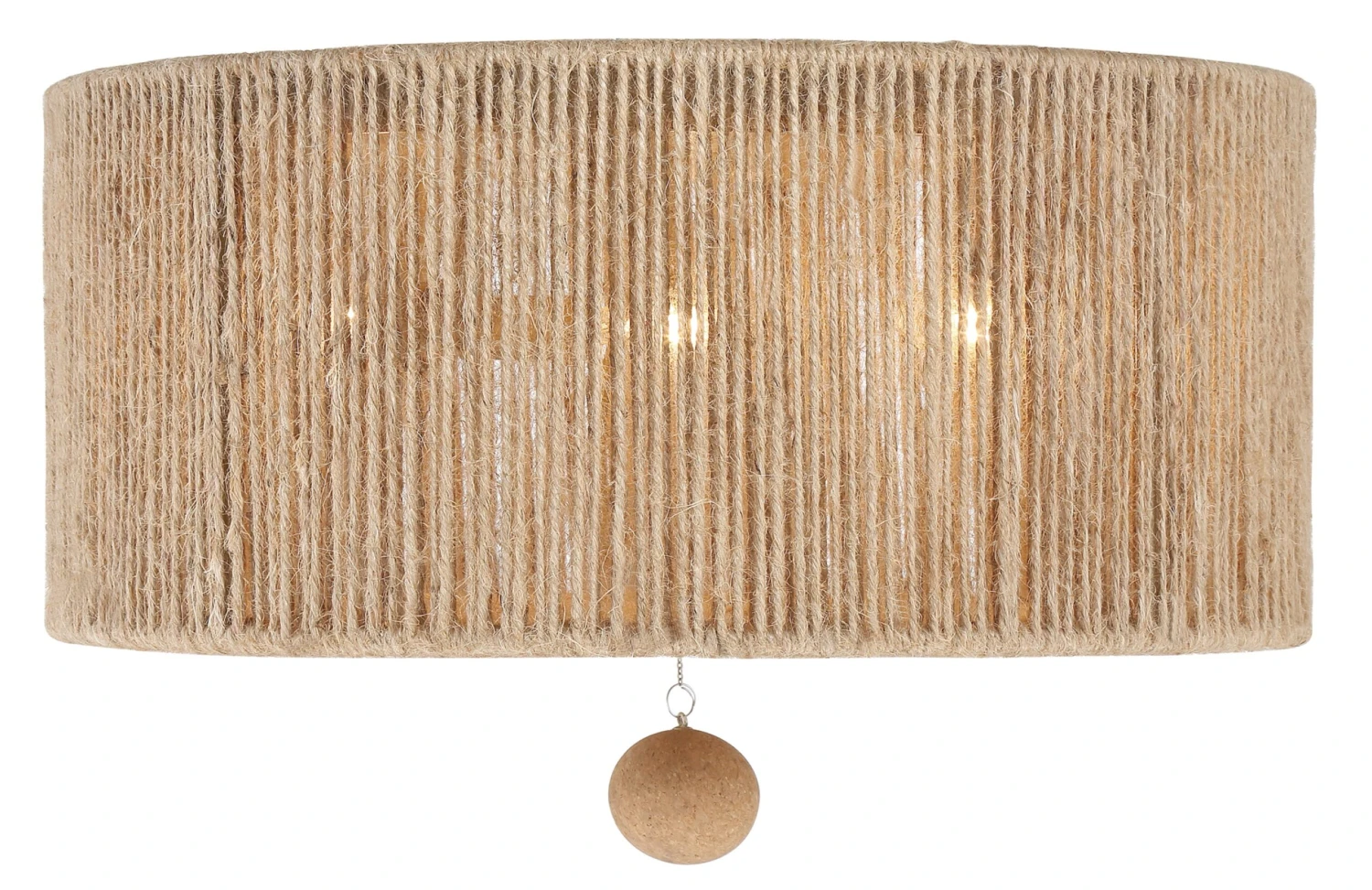The wrought-iron frame of this three-light ceiling mount is wrapped in jute, which gives it an organic, artisanal appeal. It also contributes to the warm, flattering glow when the fixture is on.