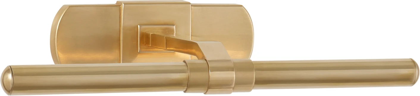 This foot-wide picture light can be mounted so that the light directs either upward or downward. The rounded ends of both the backplate and the arm accentuate the timeless elegance.