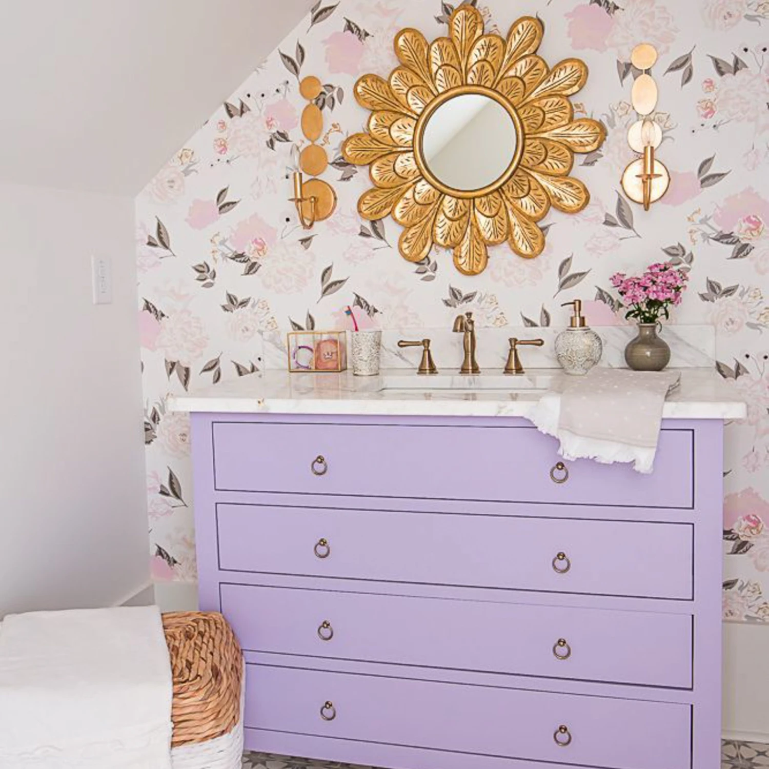 A vertical line of gleaming gold discs is a subtly retro way to maximize the light from this one-light sconce.