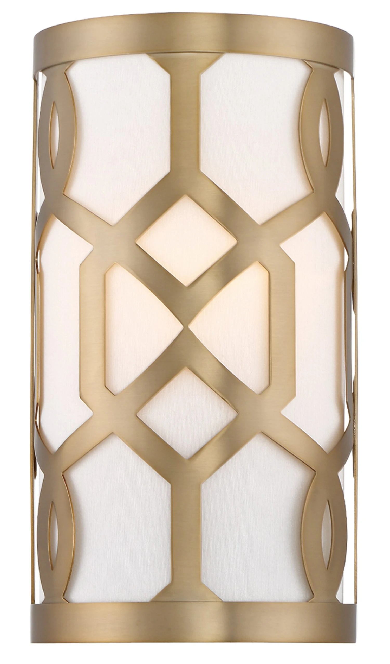 The geometric design of this steel sconce gives it a graphic sensibility, while an inner linen shade adds texture and helps soften the light. Hardwired.