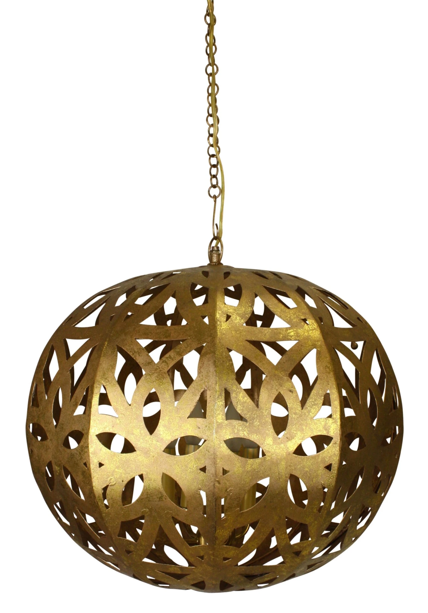 Exclusive to One Kings Lane: This spherical fixture is crafted entirely of iron with a dynamic cut-out design and gold-tone finish. Hardwired.