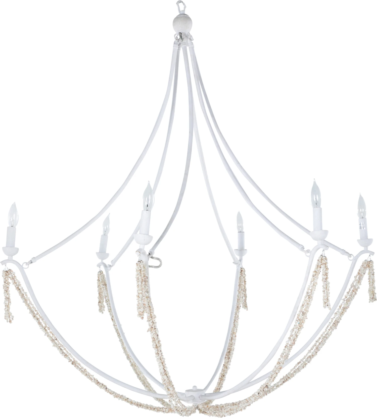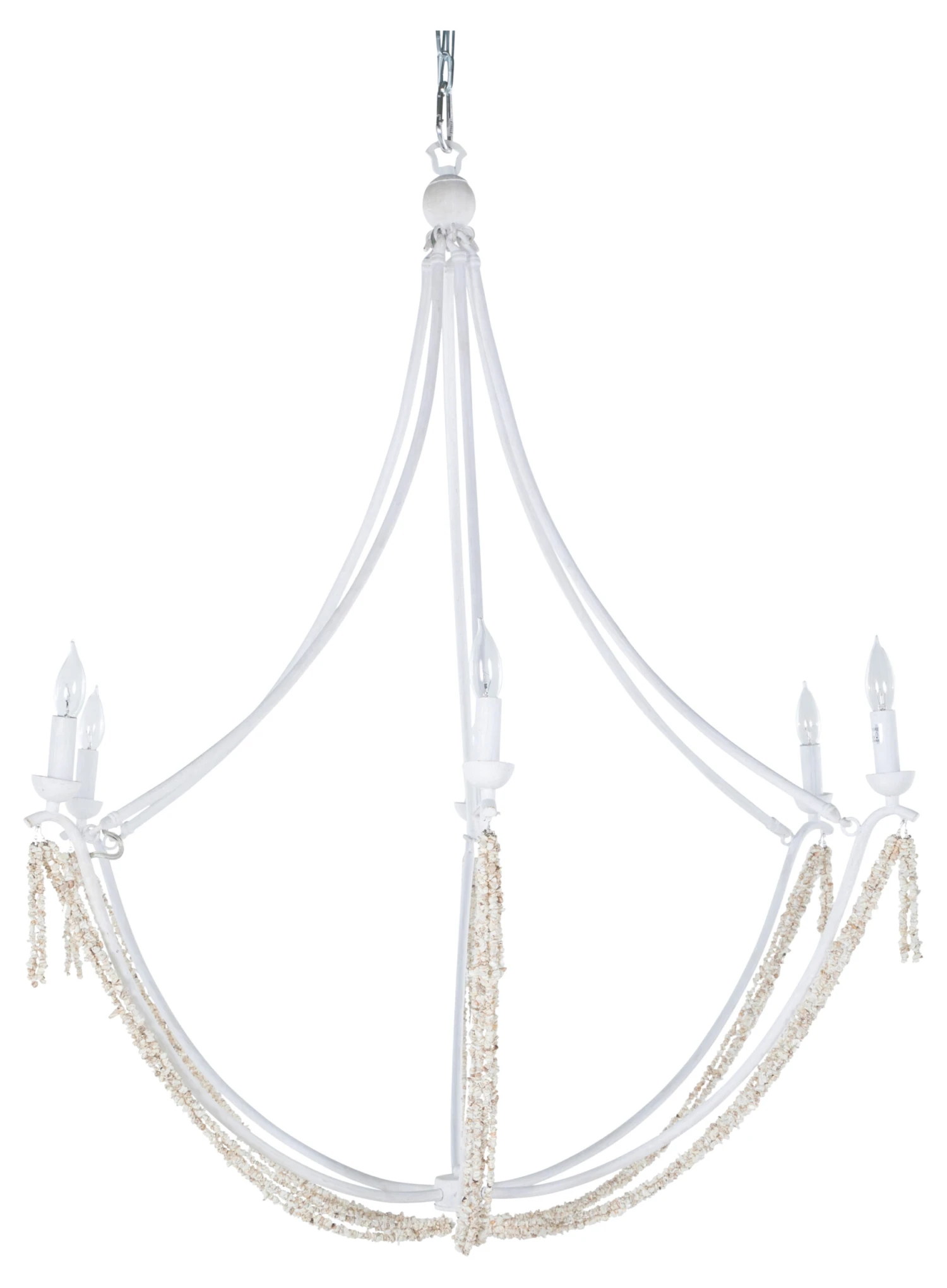 Strands of stone beads accentuate the graceful curves of this six-arm chandelier. The fixture’s white plaster finish is both timeless and on trend.