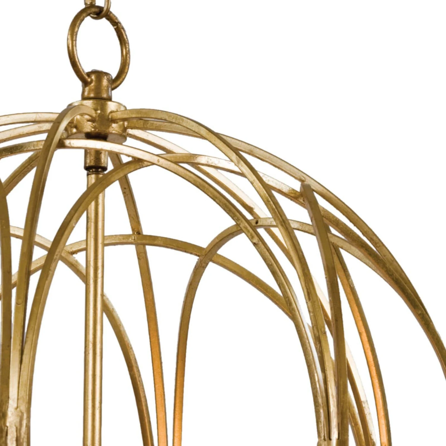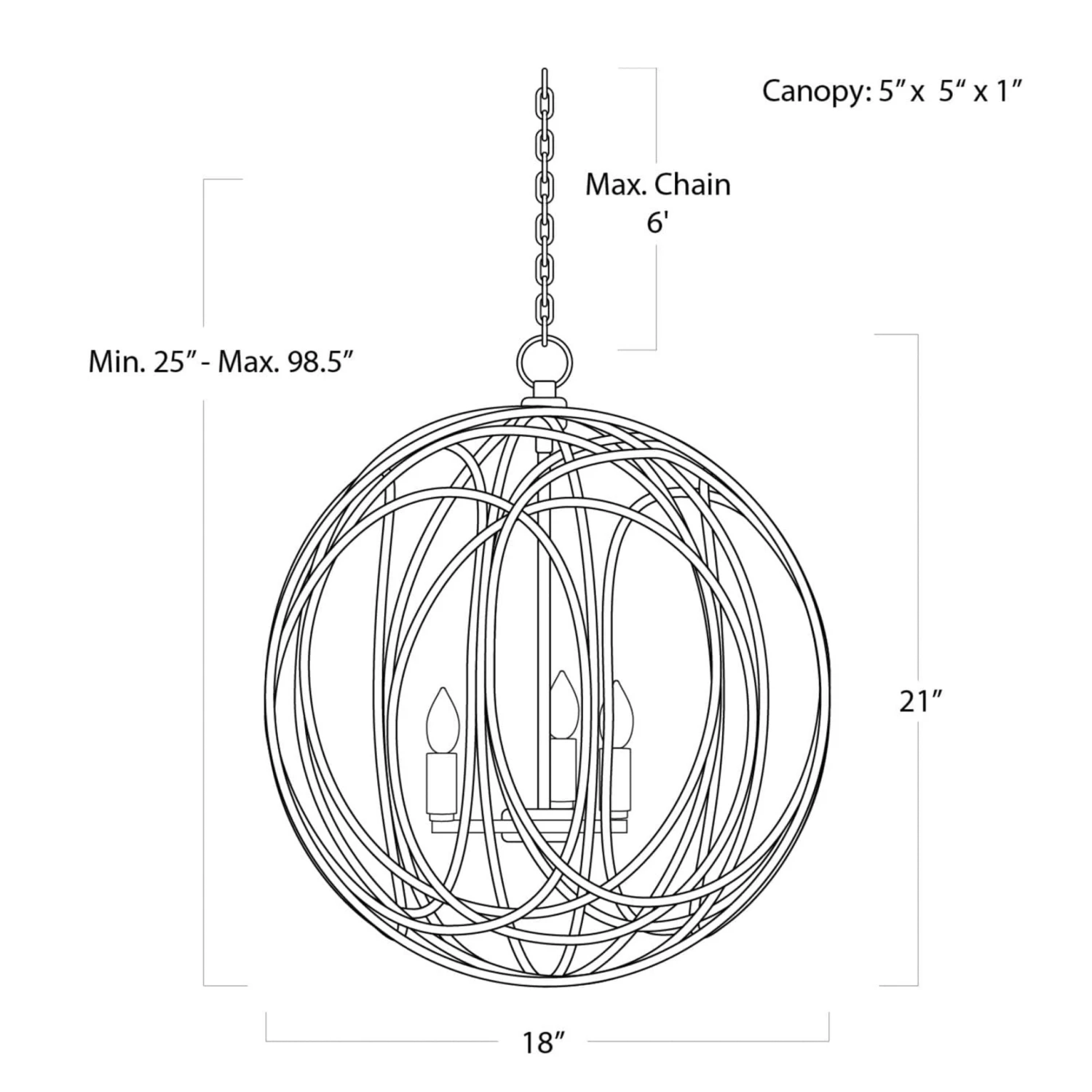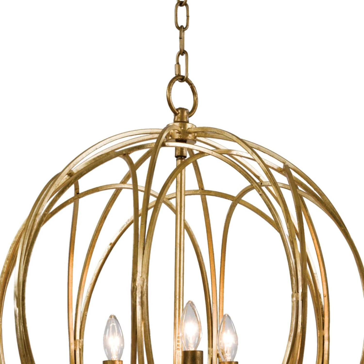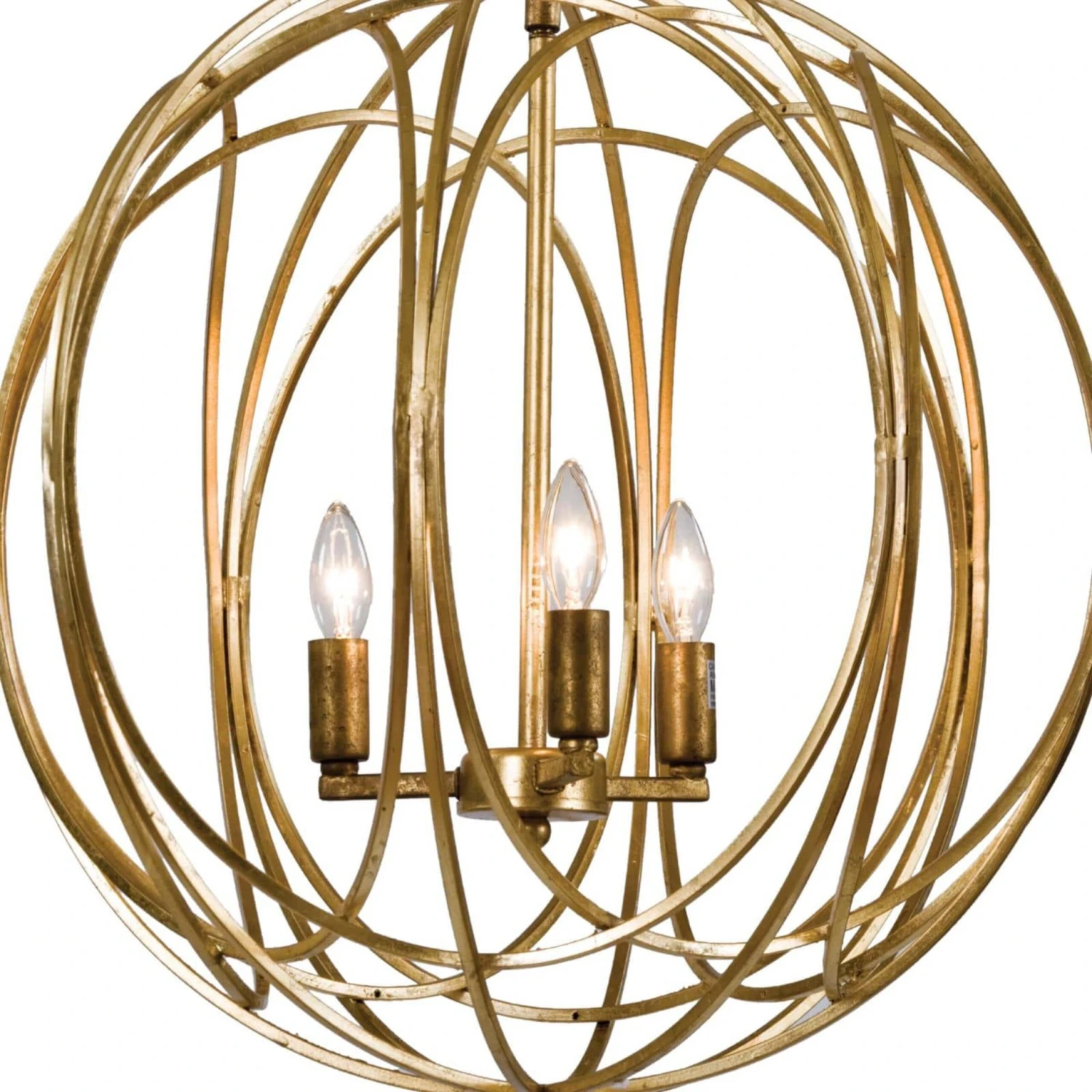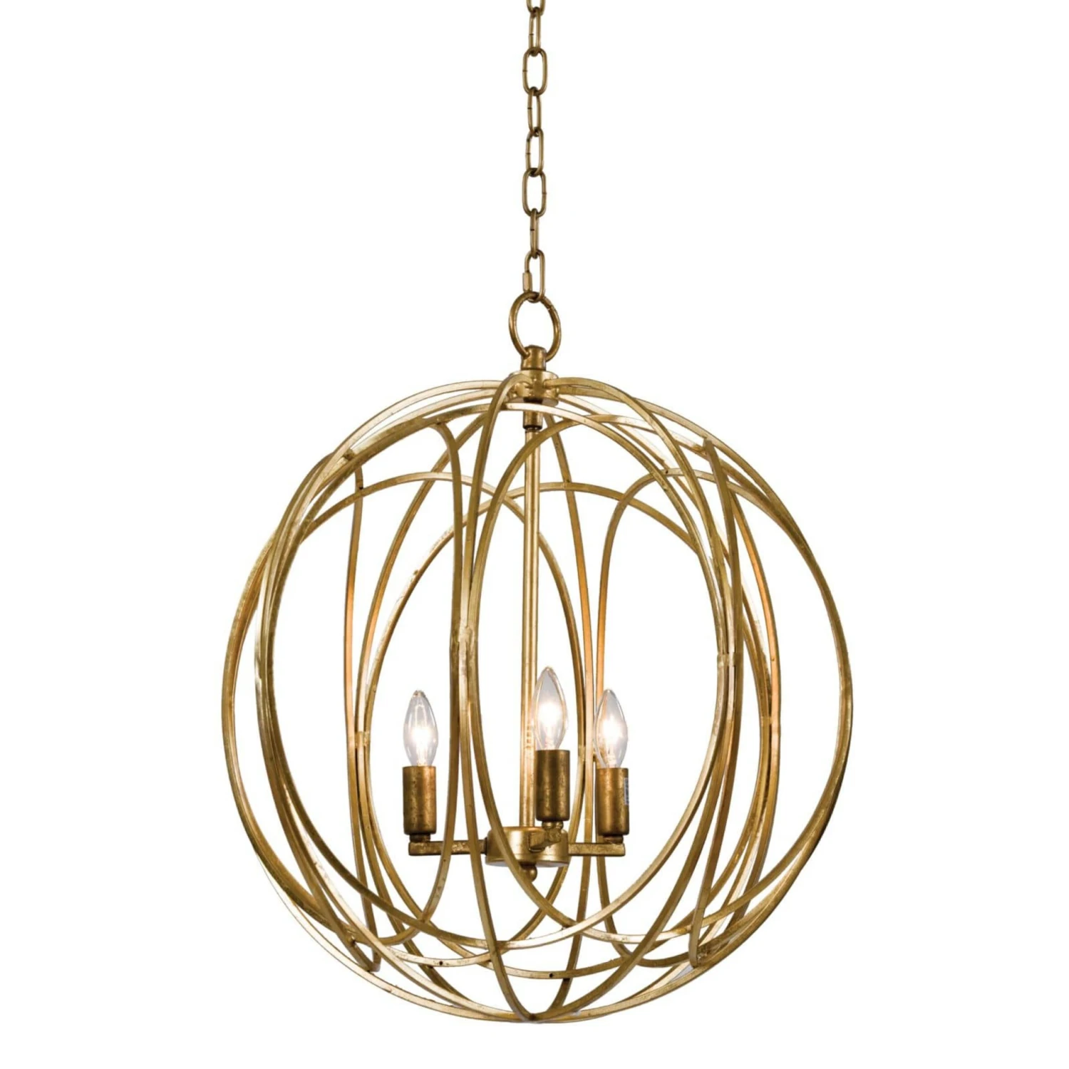 A lustrous brass finish completes the contemporary feel of this orb-shaped, three-light chandelier. Hardwired.