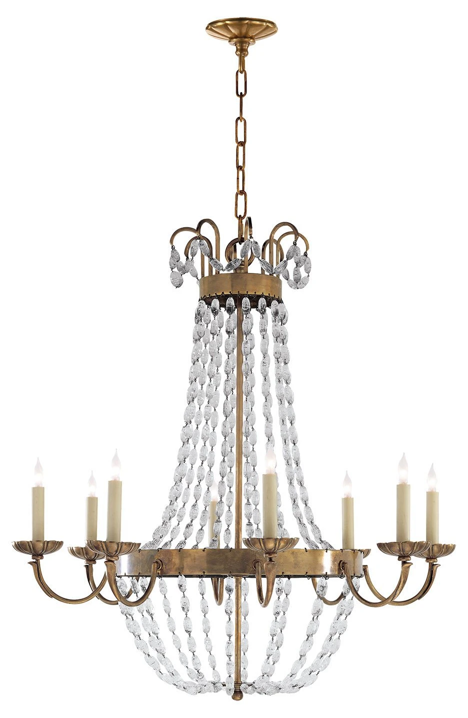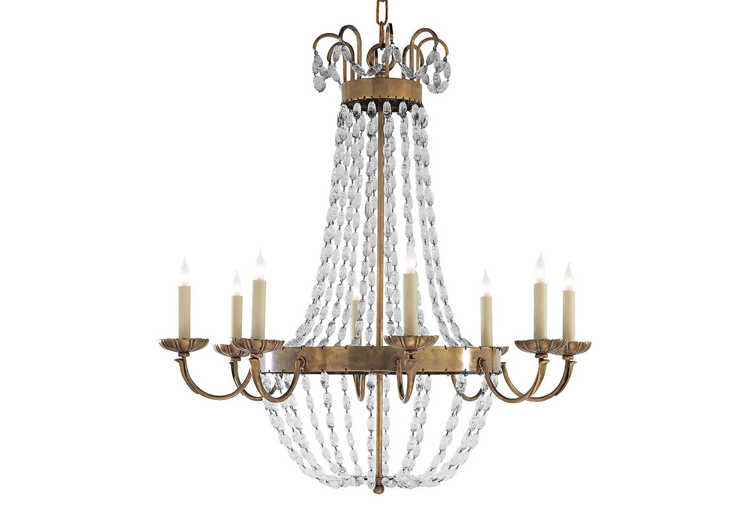 Pairing strings of beaded glass and a brass frame, this gleaming chandelier brings undeniable elegance to your space. Hardwired.
