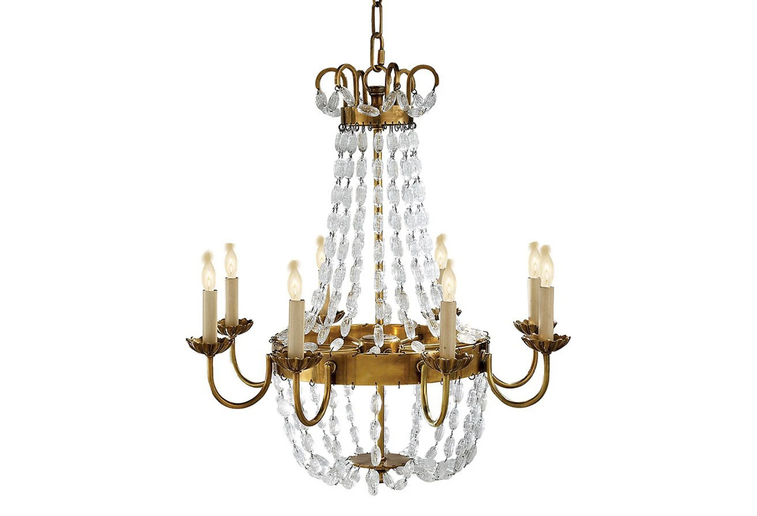 With its beaded glass accents and antiqued burnished brass candelabra, this chandelier is an exemplar of traditional elegance. Hardwired.