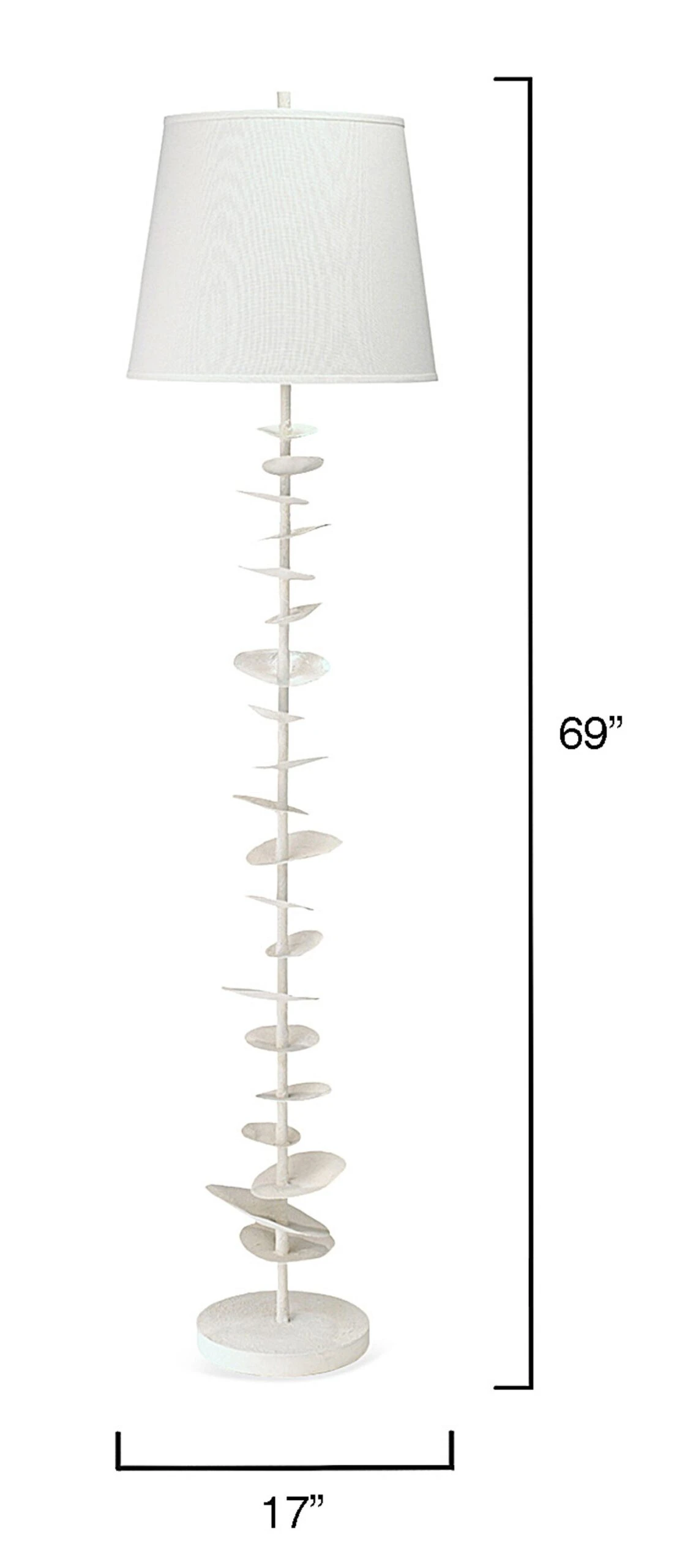 Designed with a sculptural sensibility, this modern floor lamp is crafted of steel with white gesso and plaster in a technique inspired by “Plaster of Paris” from the early 1900s. An off-white linen shade completes the design.
