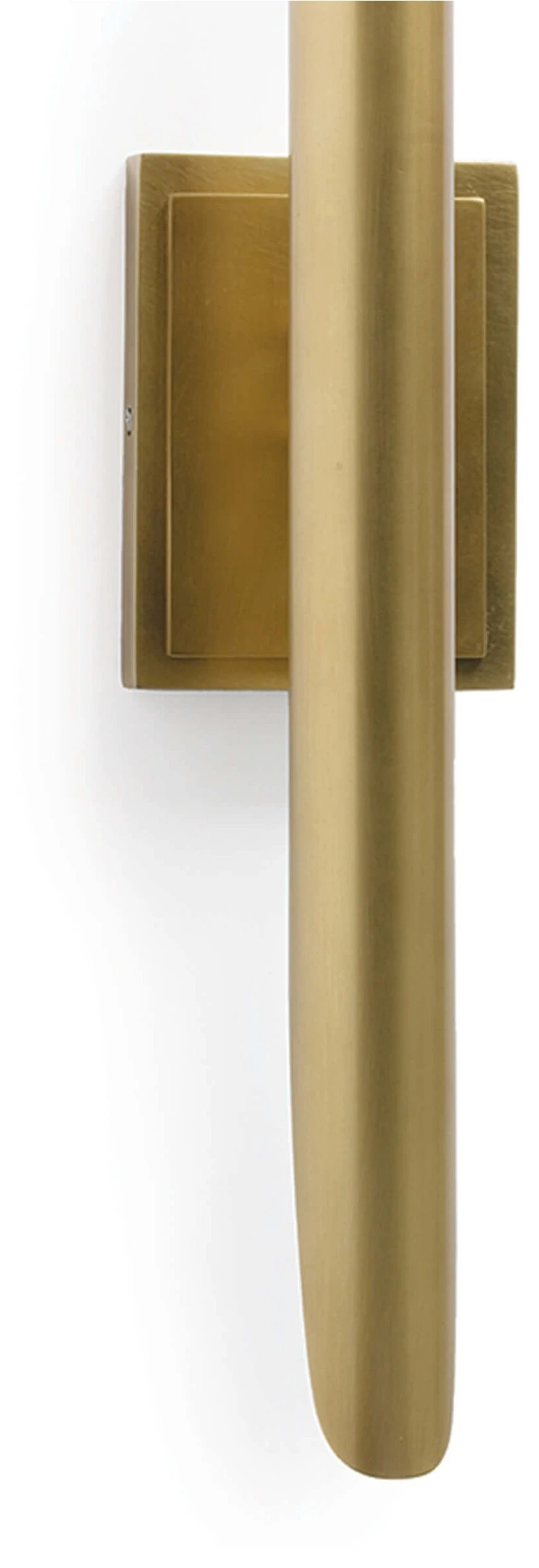 Perfect for displaying in multiples around a living room or study, this sconce is crafted of steel with an oblong body and natural brass finish. Hardwired.