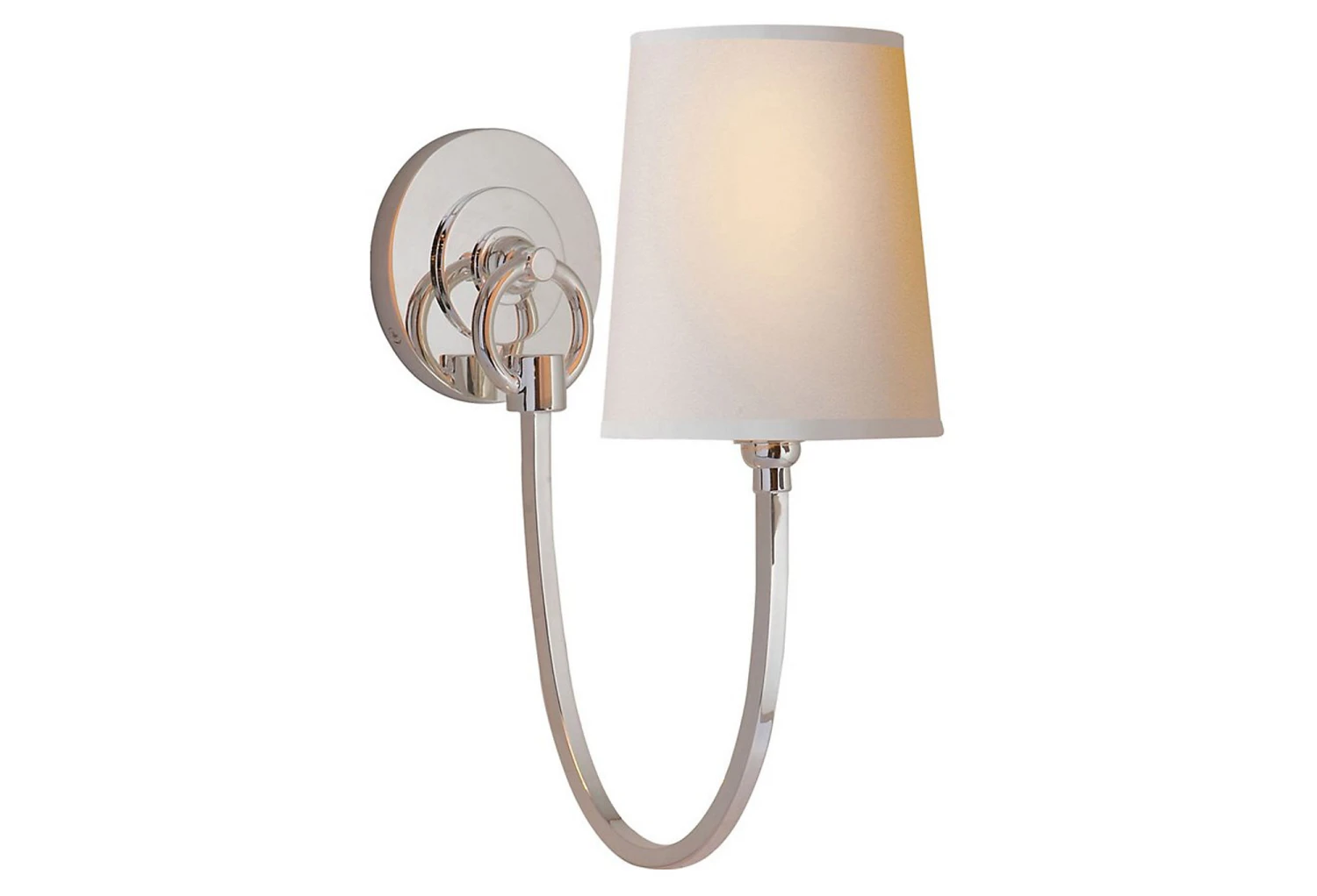 This sconce’s sweeping curve and natural paper shade will make it a sophisticated addition to any space. Hardwired.