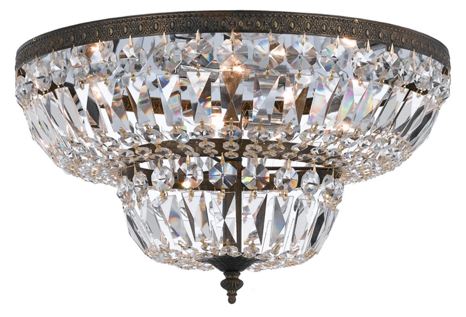 This flush mount offers two tiers of beautifully lined multifaceted crystals that will infuse your space with glamour. Hardwired.