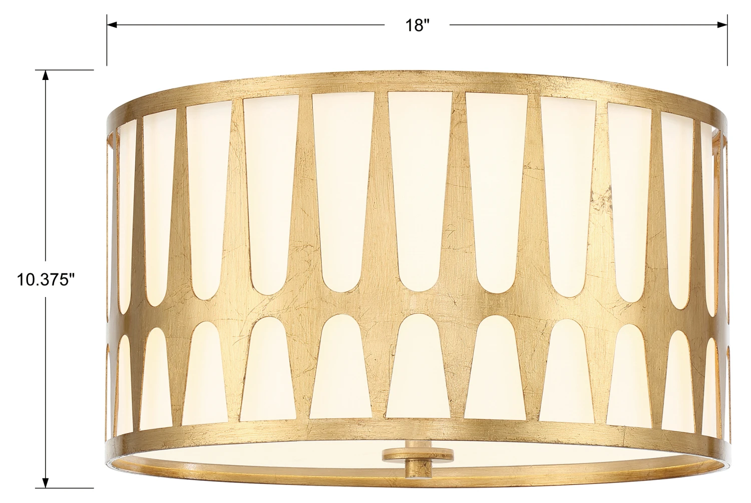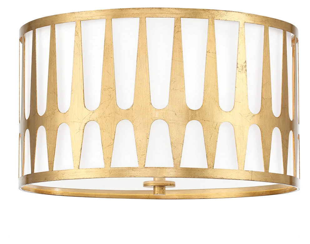 The gleaming golden finish of the metal overlay adds timeless glamour to this three-bulb ceiling fixture. The glass diffuser and the inner white silk shade ensure a soft, flattering glow.