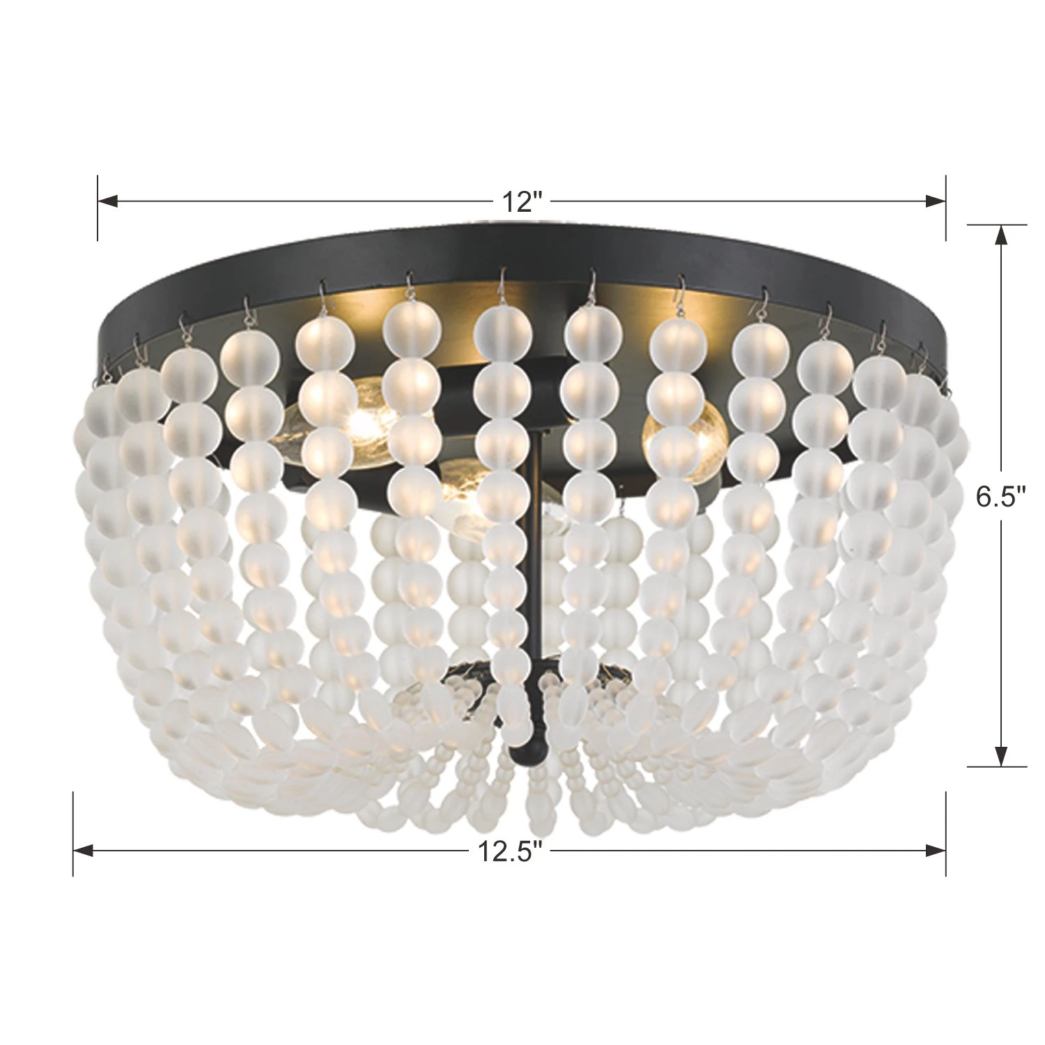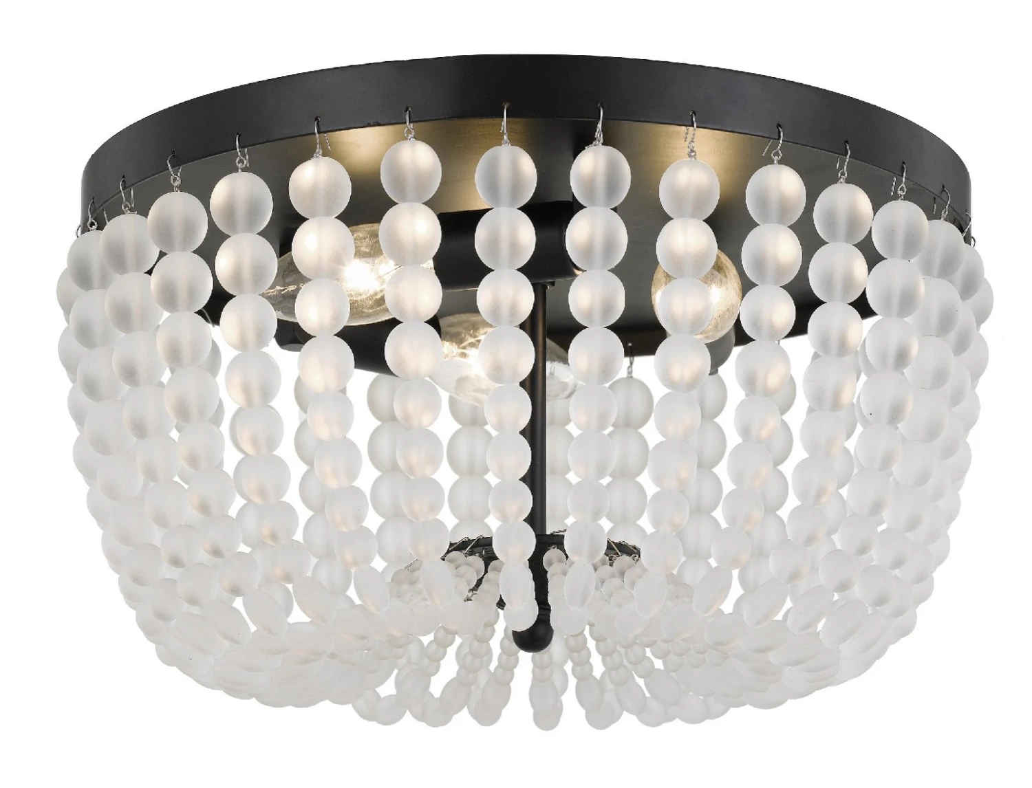Hundreds of hand-cut frosted crystal beads adorn this opulent flush mount, which is beautifully crafted of steel with a hand-painted matte black finish. Hardwired.