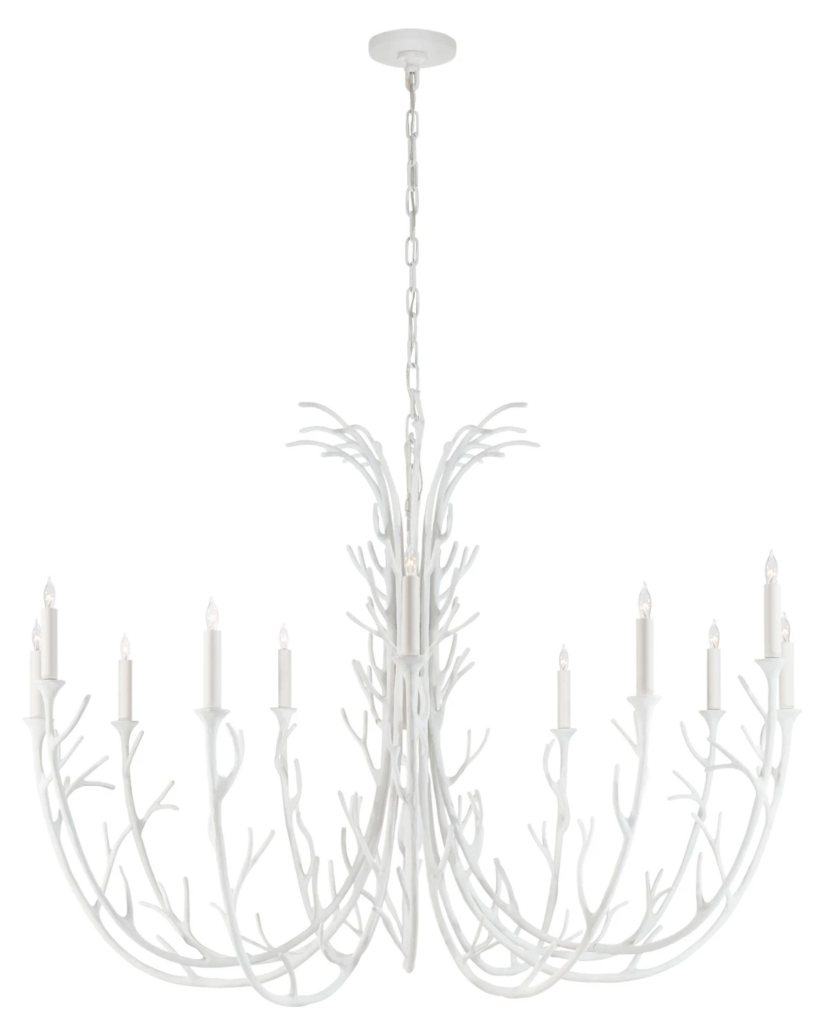 Designed by Julie Neill for Visual Comfort: A subtle way to incorporate botanical elements into your decor, this chandelier is crafted of aluminum and thoughtfully designed with branch-like detailing and a plaster-white finish. Hardwired.