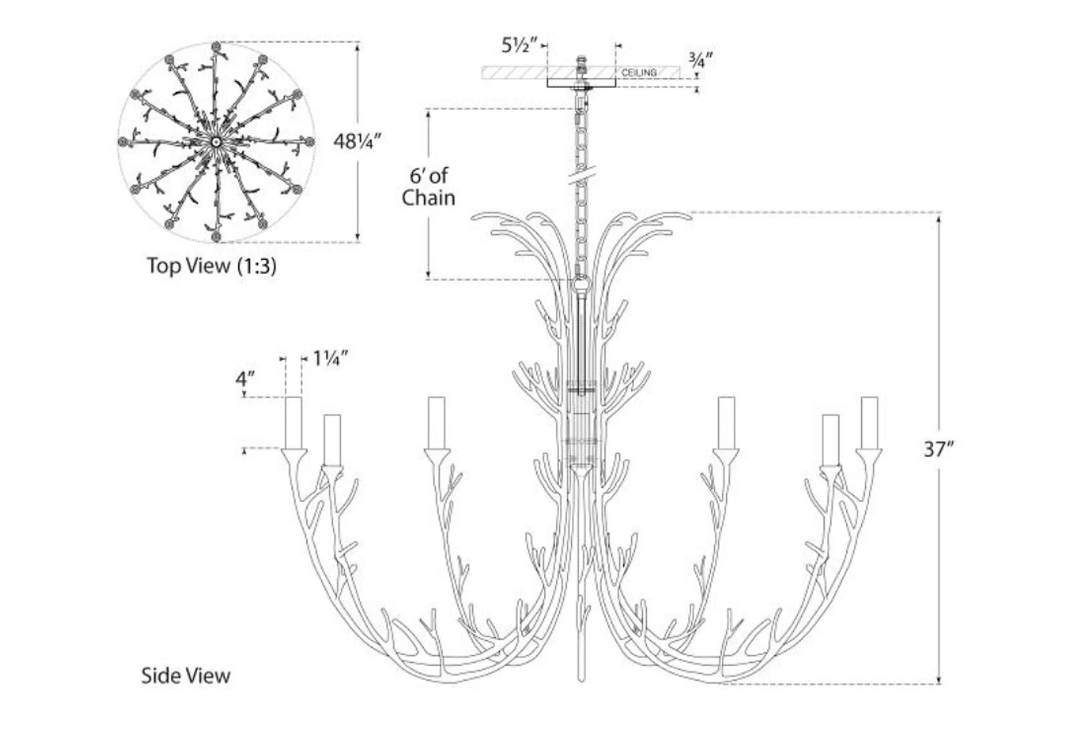 dimensions: 48.25″dia x 37″h; fixture, 37″h; canopy, 5.5″dia