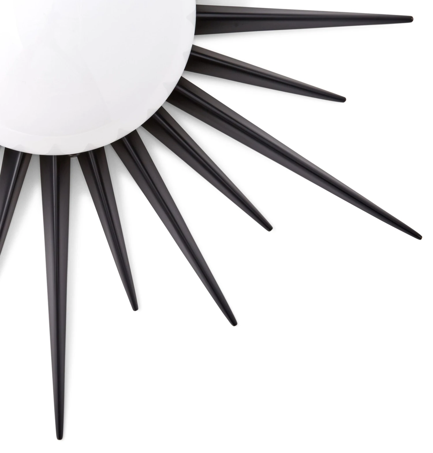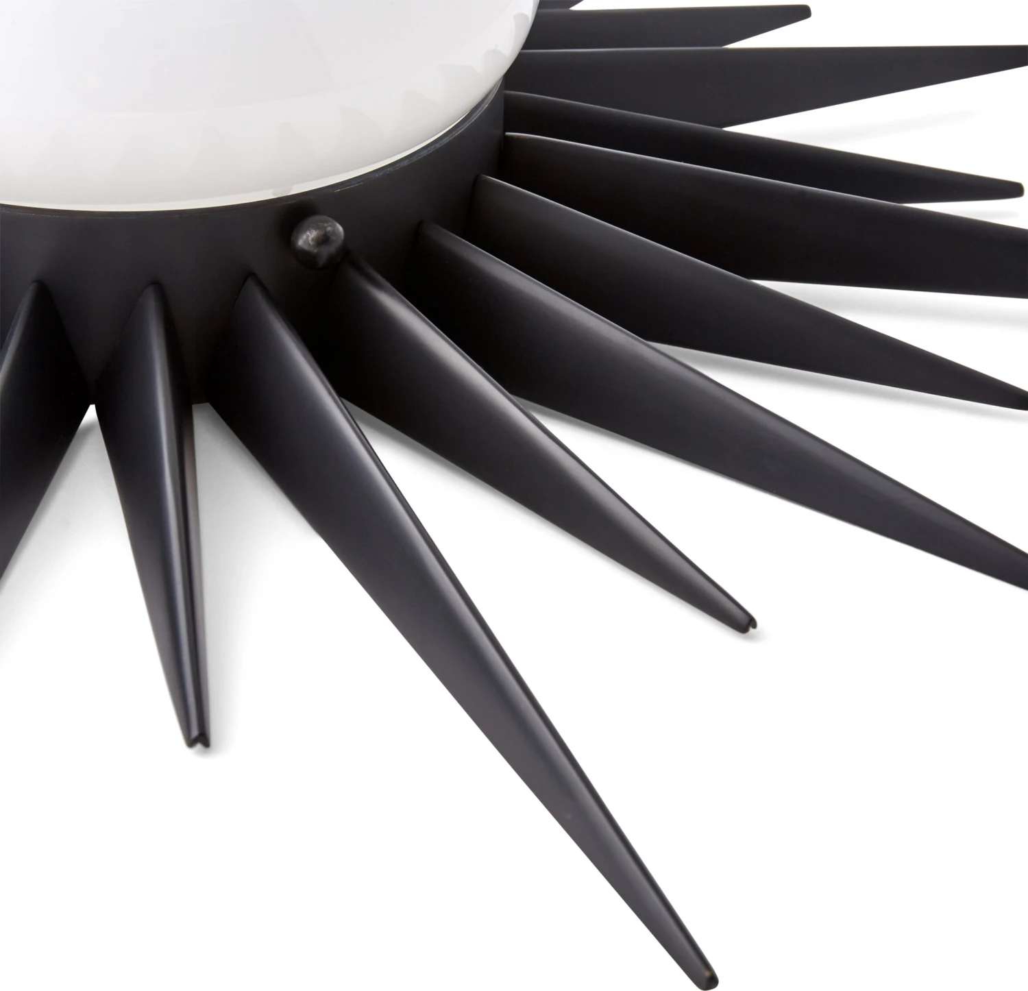 Designed by us and available only at One Kings Lane: This midcentury-inspired flush mount features an impressive steel body in a classic sunburst design. A deep bronze finish completes the look and adds to this fixture’s eye-catching appeal. Hardwired.