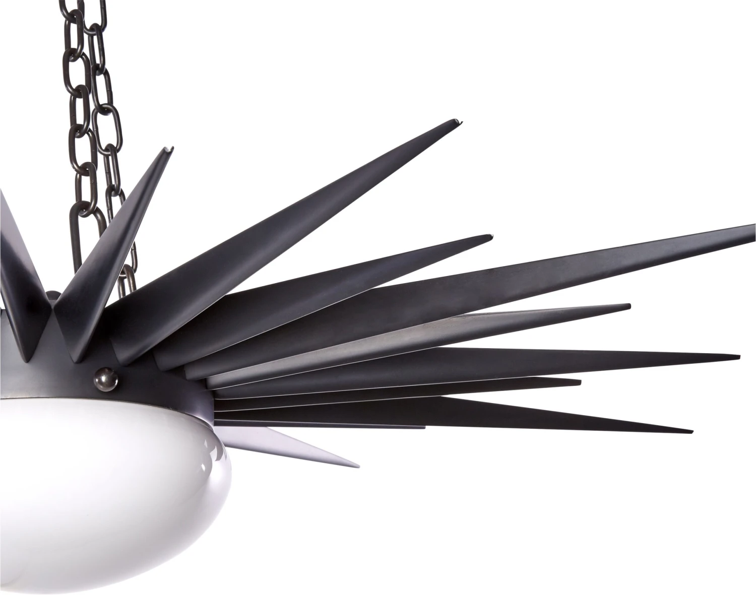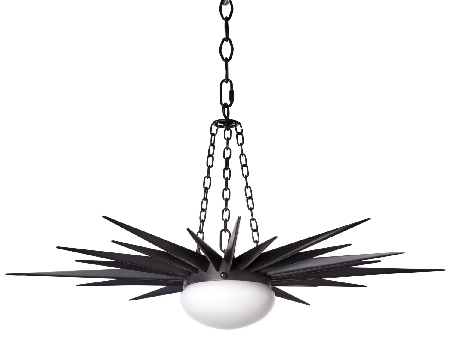 Designed by us and available only at One Kings Lane: This midcentury-inspired pendant features an impressive steel body in a classic sunburst design. A deep bronze finish completes the look and adds to this fixture’s eye-catching appeal. Hardwired.