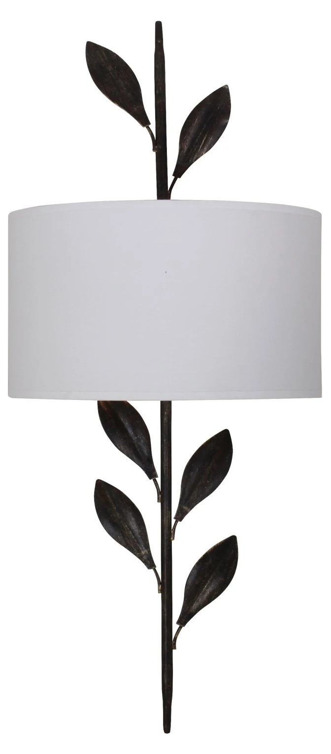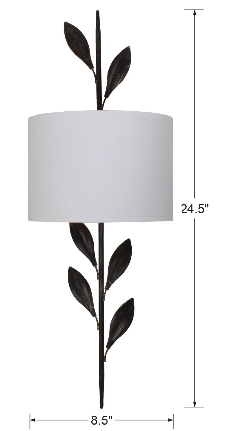 With its wrought-iron leaves and elegant English-bronze finish, this sconce has a quiet sophistication that will instantly elevate any room it’s in. Includes 8″ of wire. Hardwired.