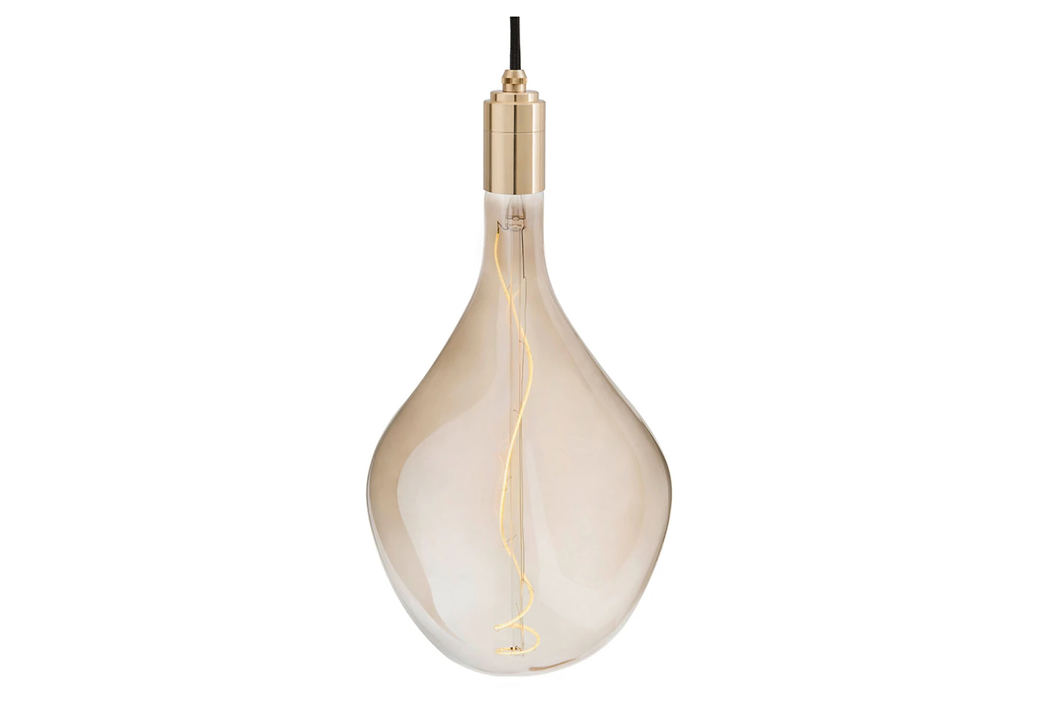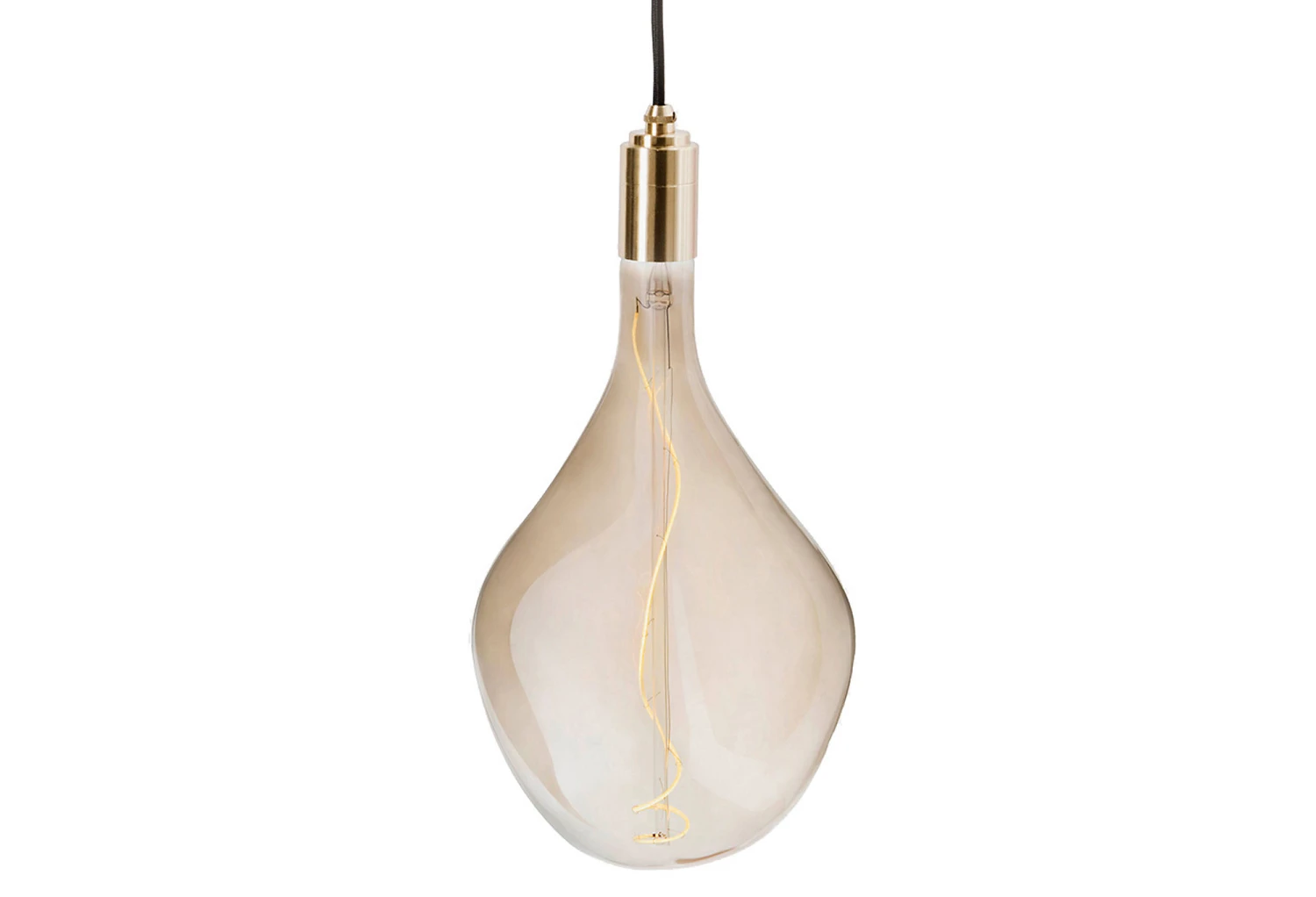 This simple pendant shows off the organic shape of what is the largest sculptural bulb made. The spiral filament, designed to mimic the Fibonacci sequence, is encased in mouth-blown glass. Its slight tint ensures a soft, flattering glow, while the brass trim adds a warm glimmer whether the light is on or off. With an equivalent incandescent power of 22W, this 5W LED bulb can reduce energy usage by up to 90%.