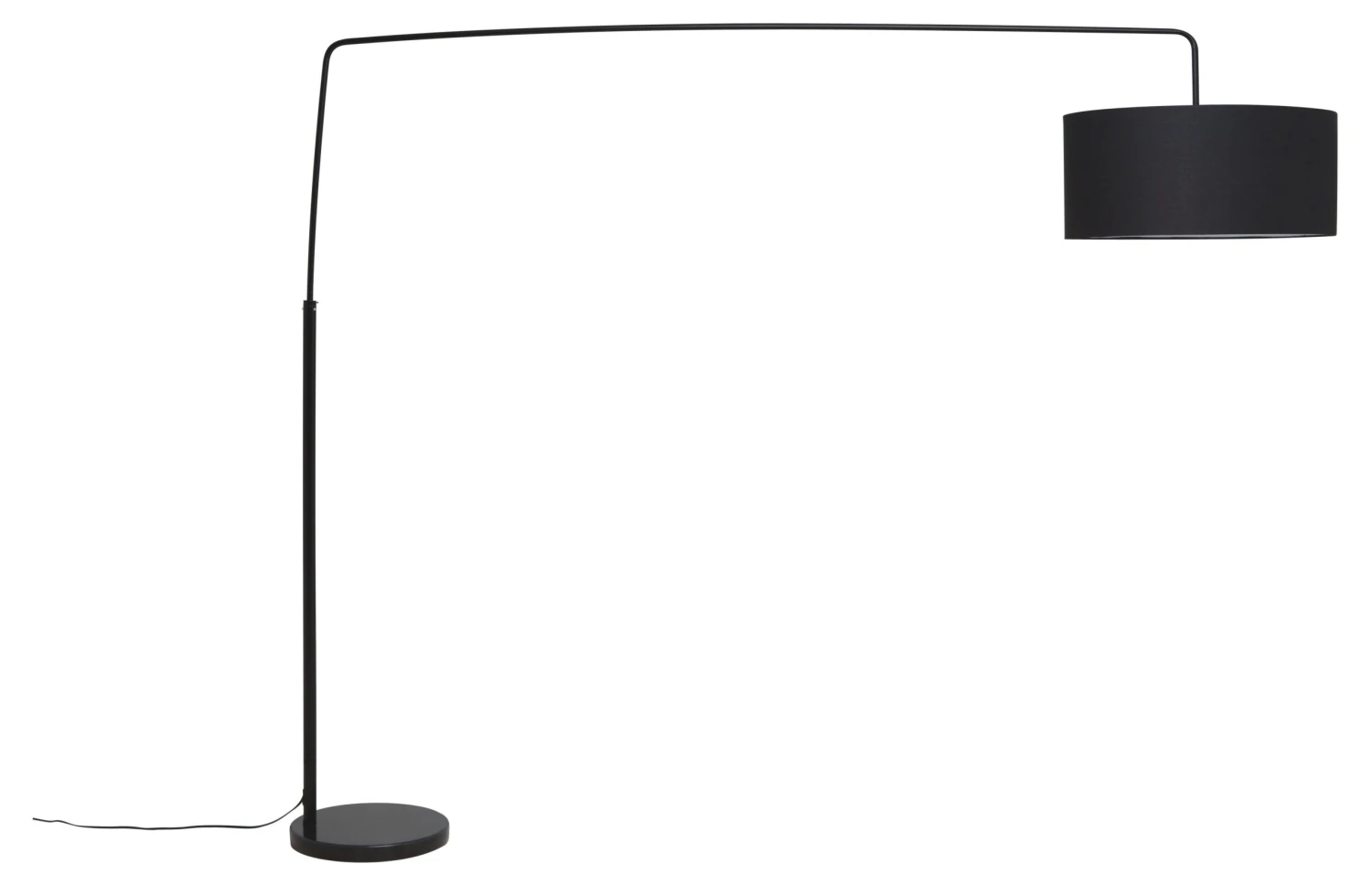Anchored to a black marble base, this sleek floor lamp is crafted of powder-coated steel with an adjustable height feature and exaggerated silhouette. An all-black finish adds to its modern appeal.