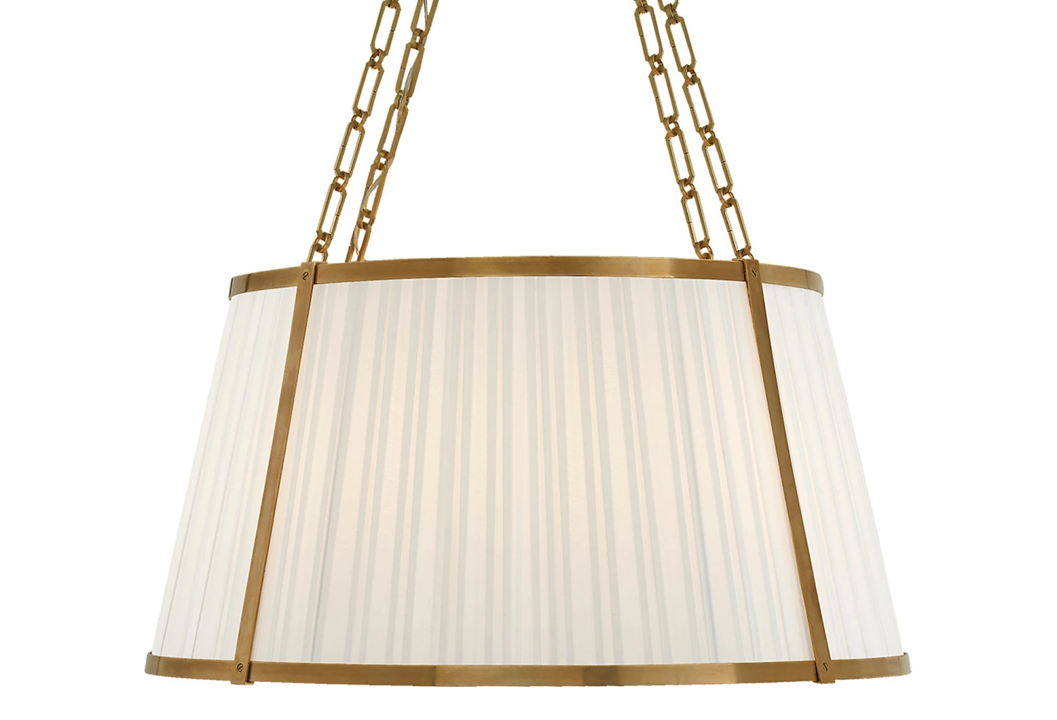 Encased in a sturdy brass frame, this design emits a soft glow behind a pleated silk shade. Hardwired.